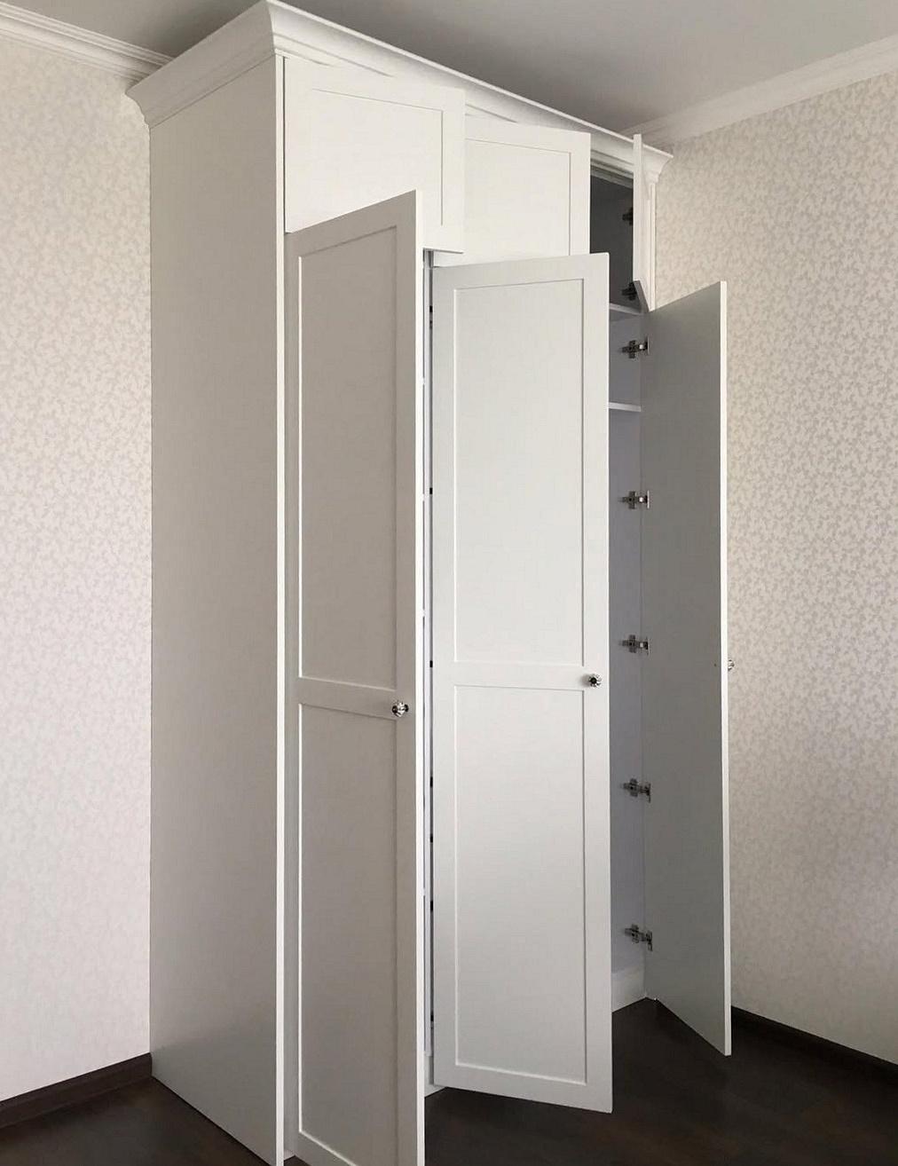 Встраиваемый во всю стену белый классический шкаф в спальню «Модель 1328»