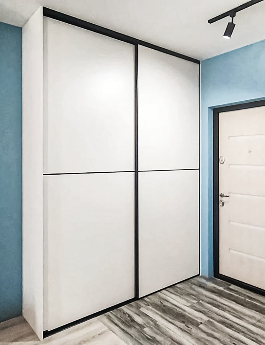 Белый шкаф с черным тонким профилем в прихожую «Модель 708»