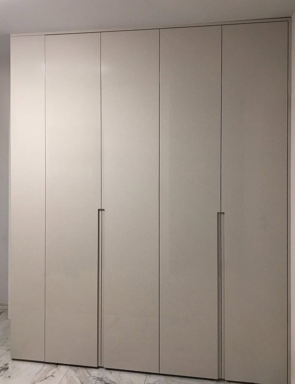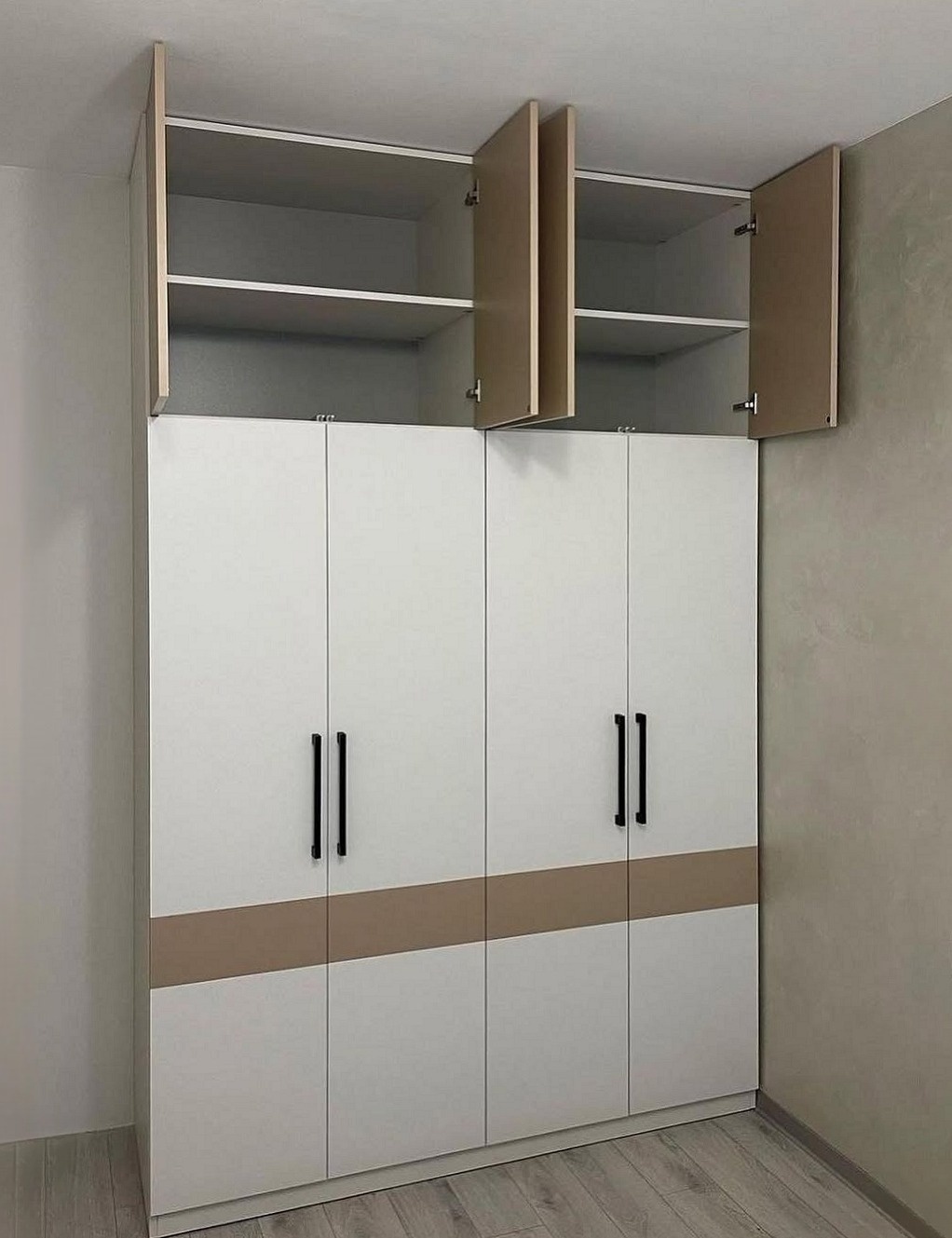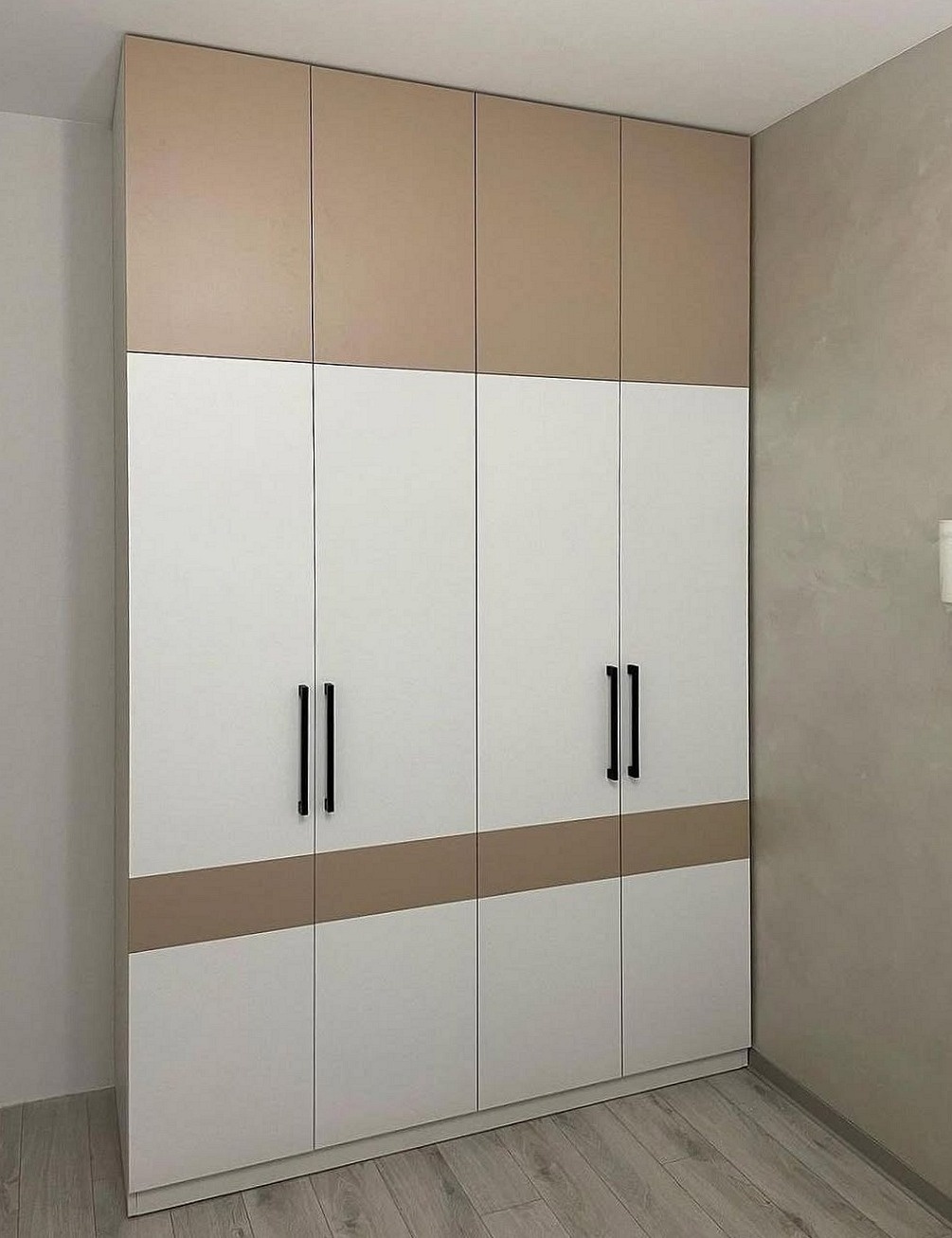 Широкий бежевый шкаф с черными ручками «Модель 751»
