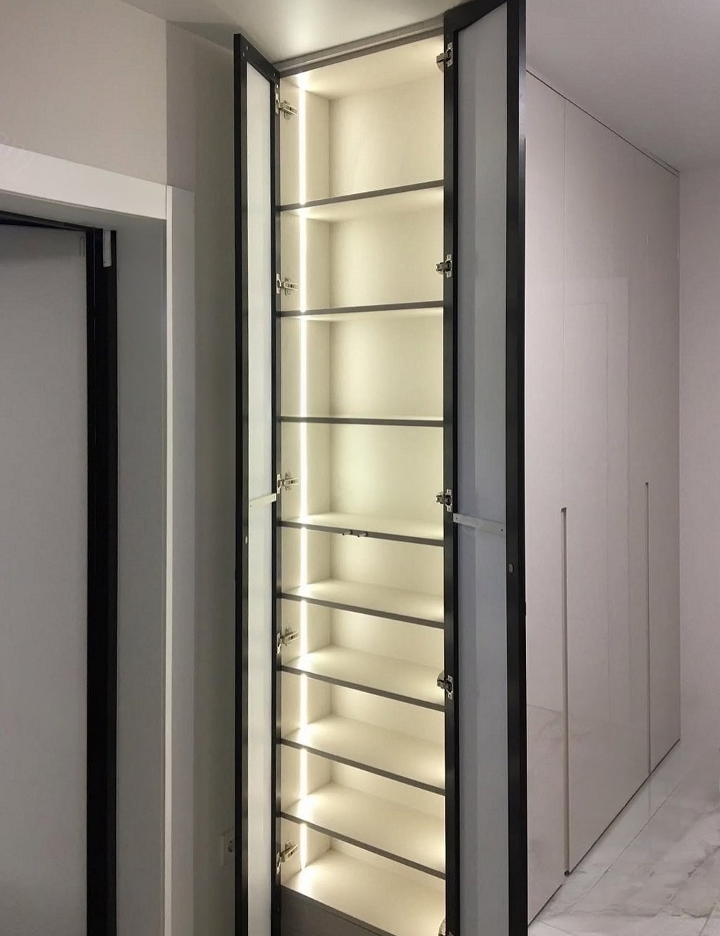 Встроенный шкаф с антресолями и подсветкой в прихожую «Модель 157»