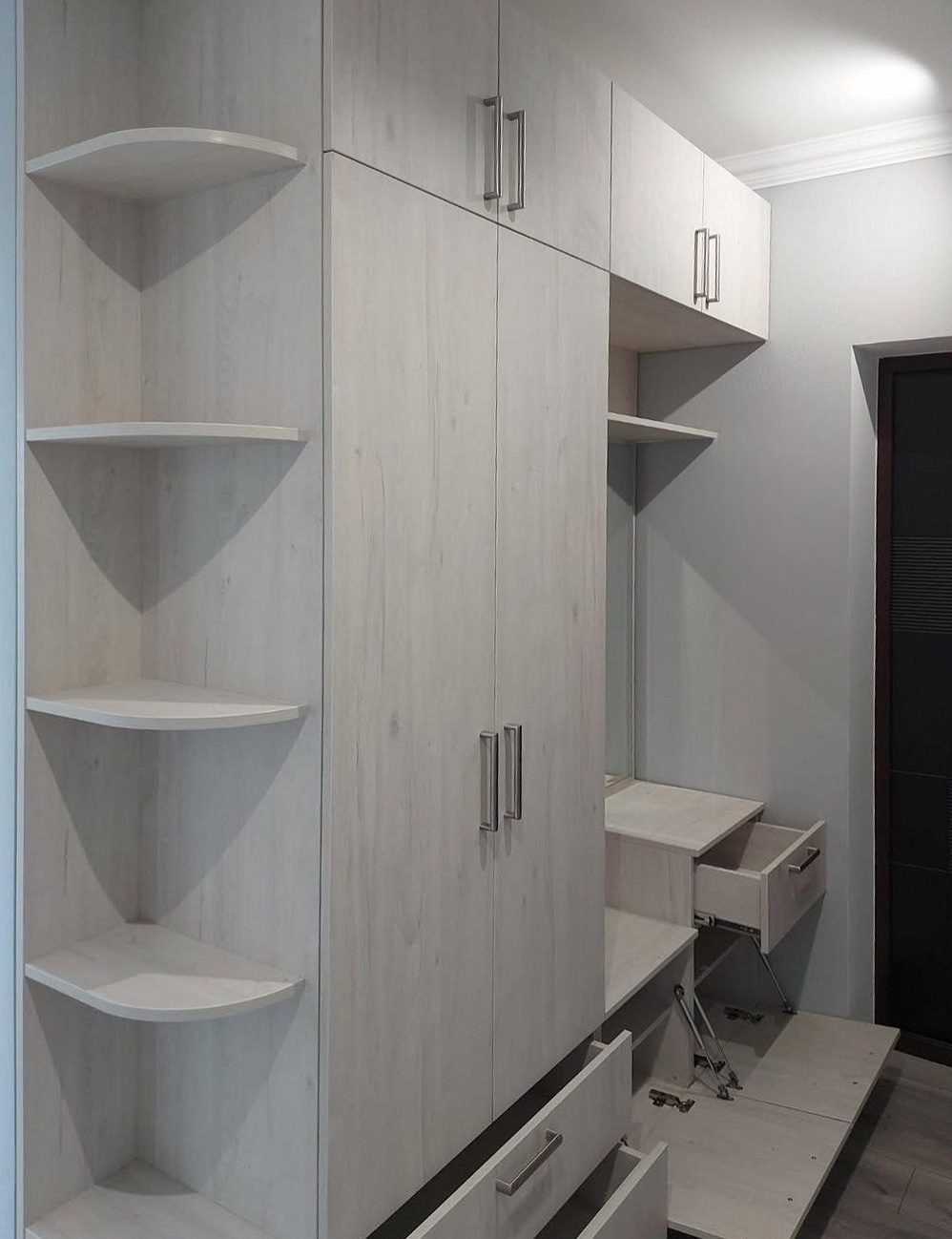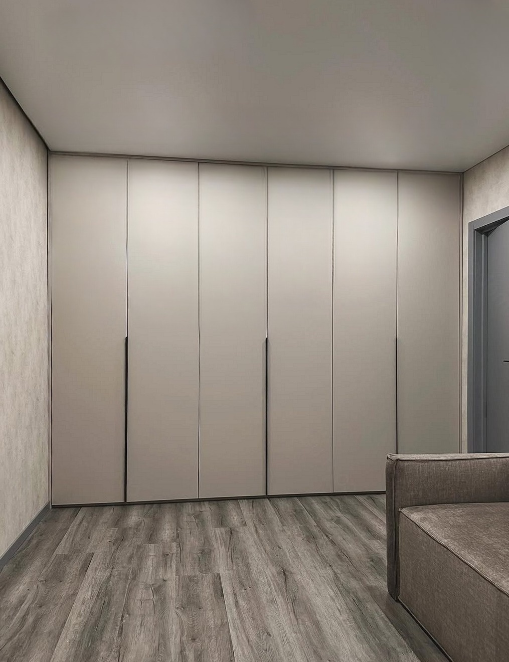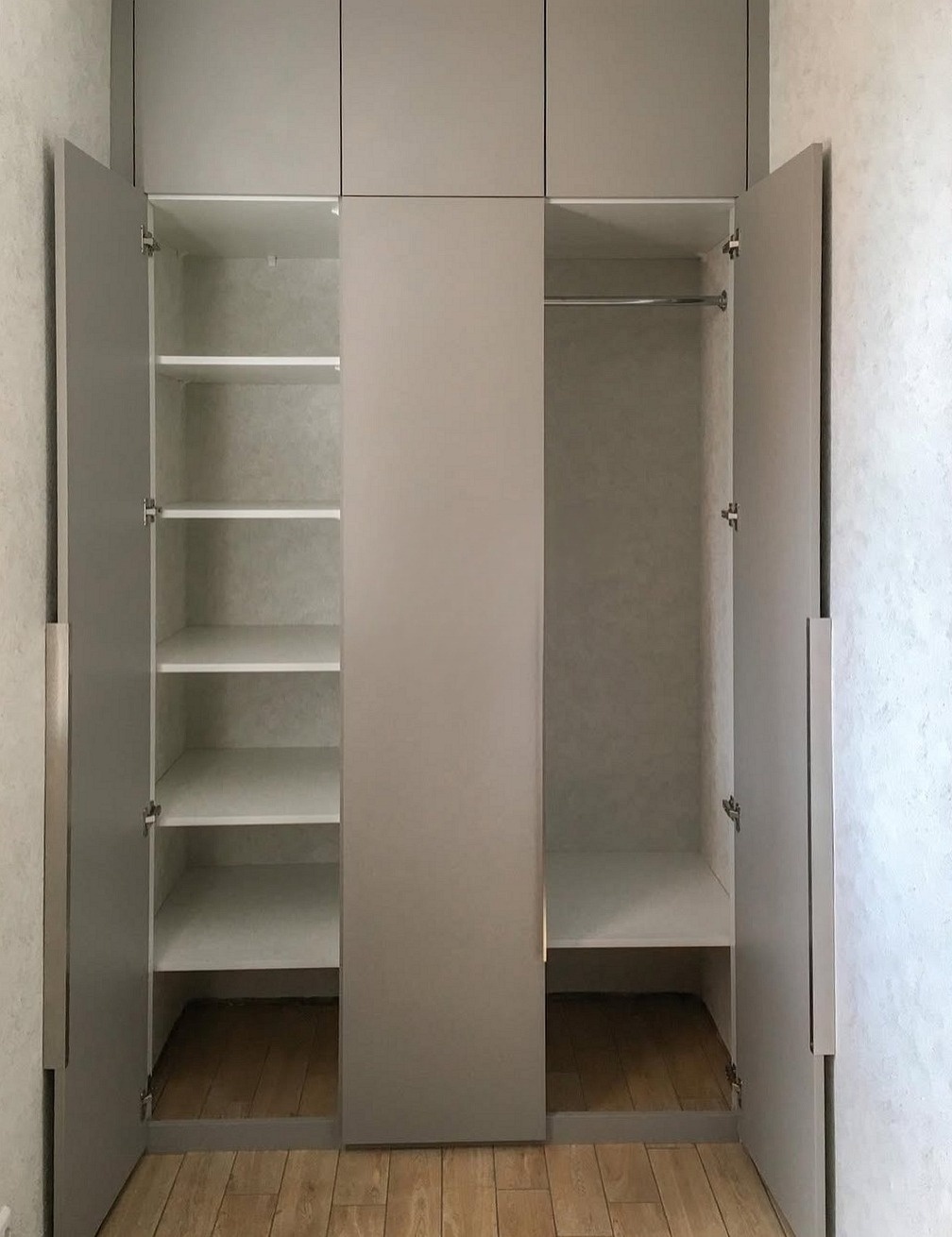 Встроенный в нишу серый шкаф из ЛДСП «Модель 685»