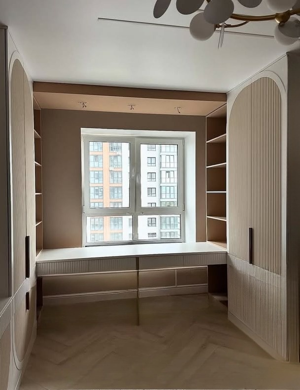 Встроенный шкаф с фрезеровкой и открытыми полками «Модель 63»