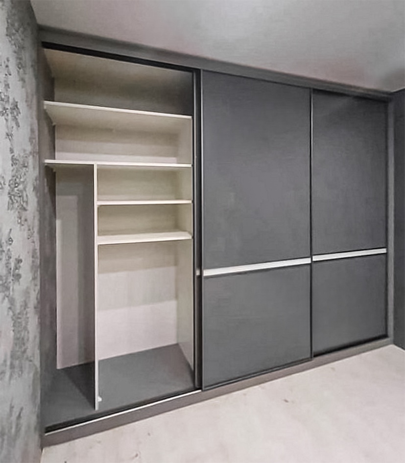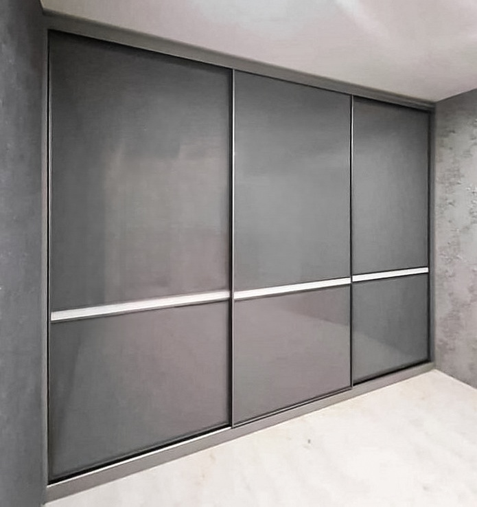 Больший встроенный шкаф-купе со стеклянными дверями серого цвета «Модель 737»