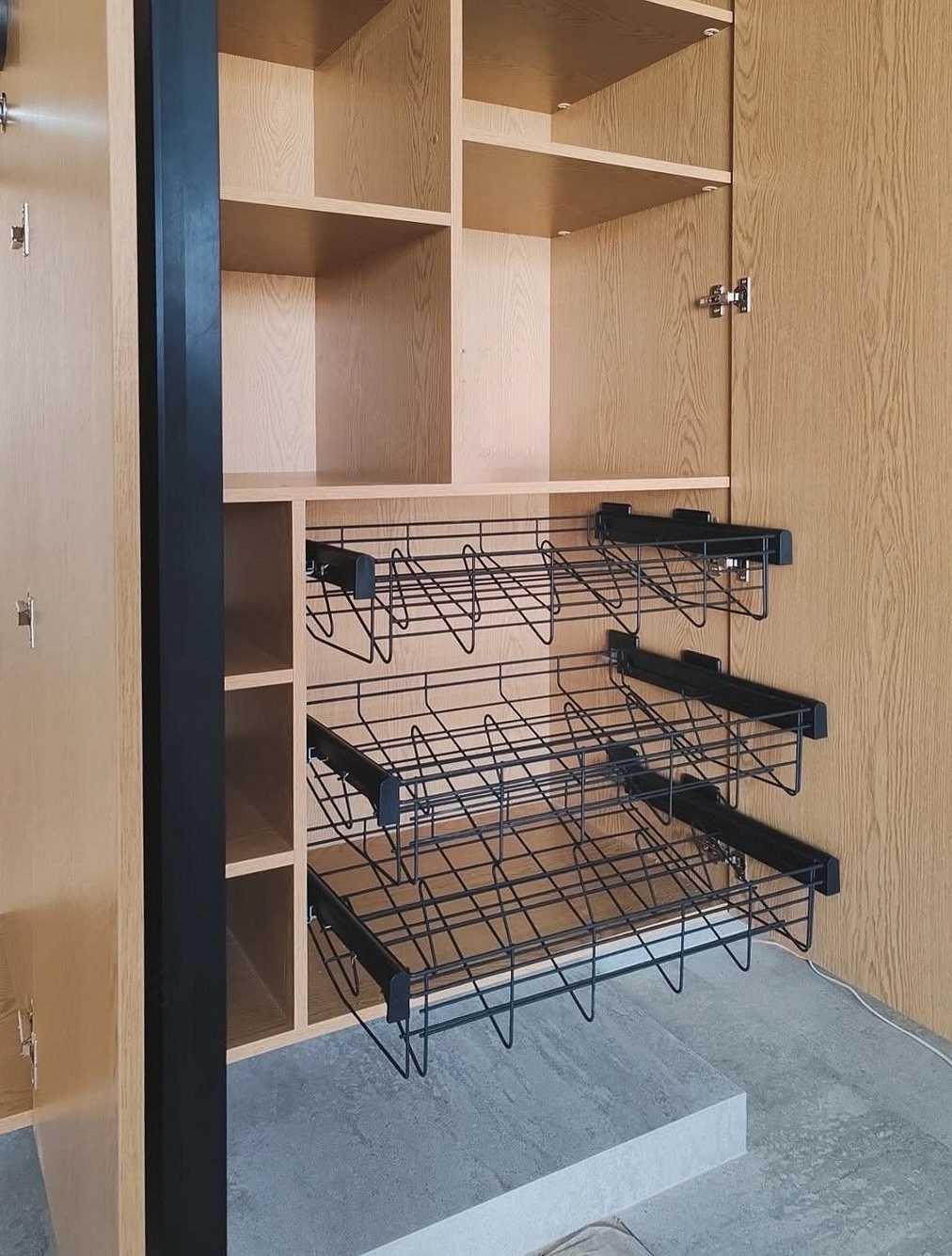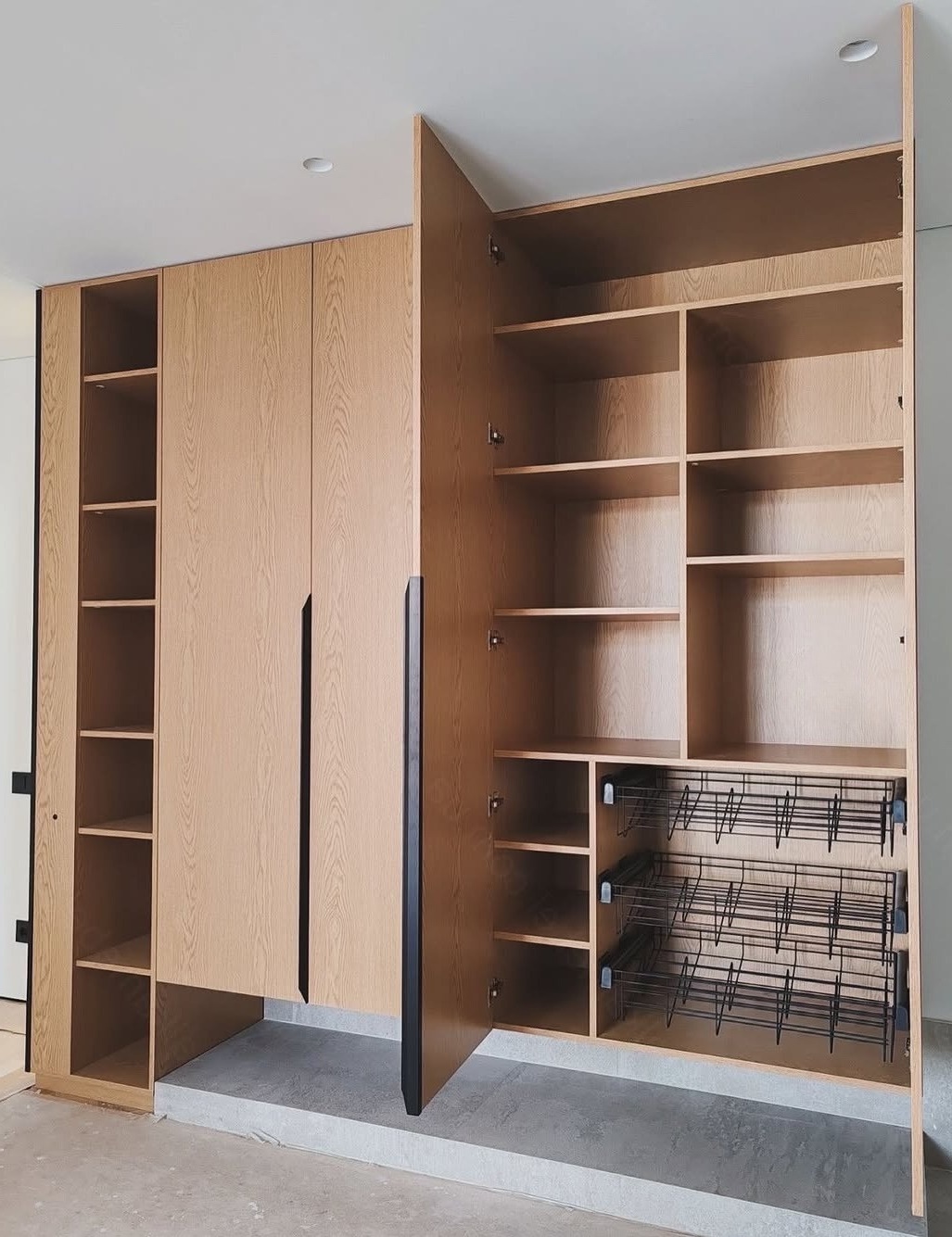 Встроенный в нишу жалюзийный шкаф с открытыми полками «Модель 1316»