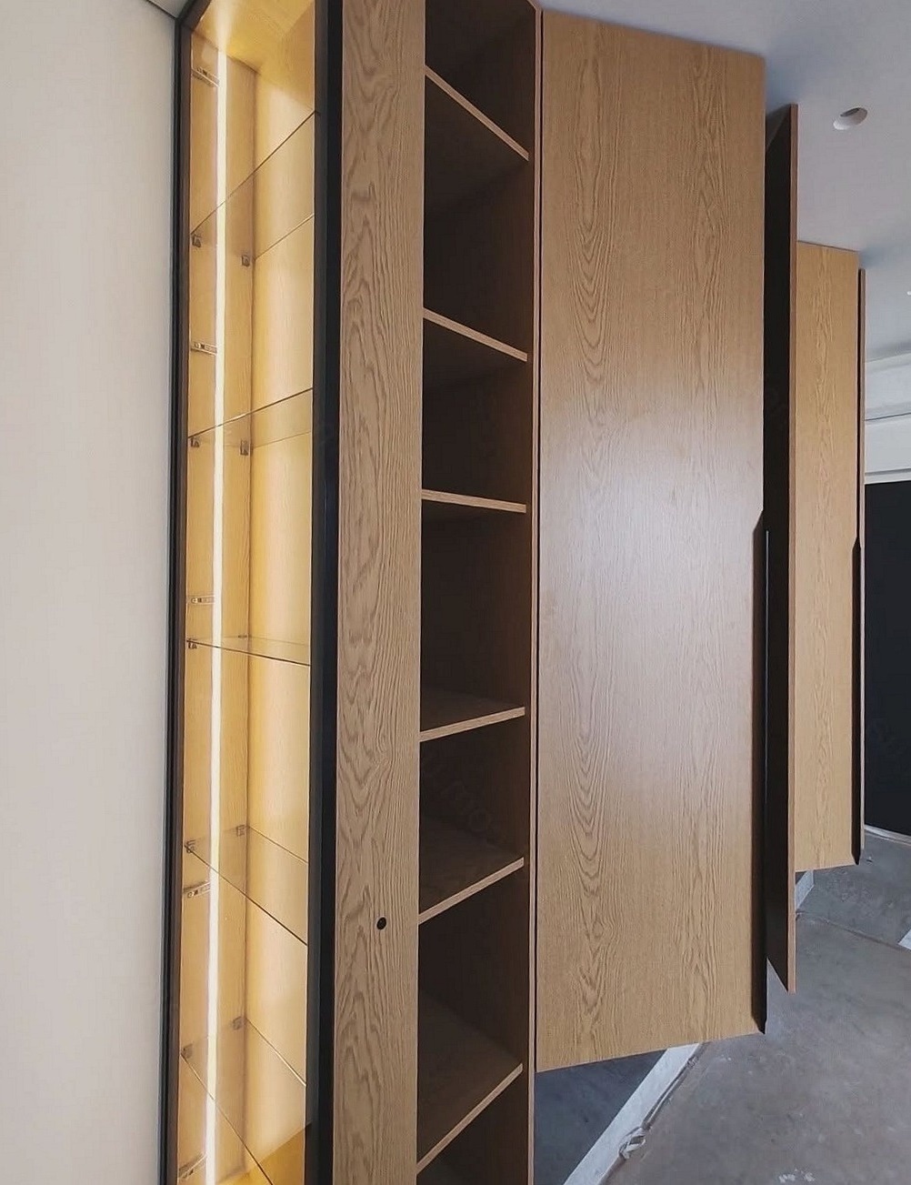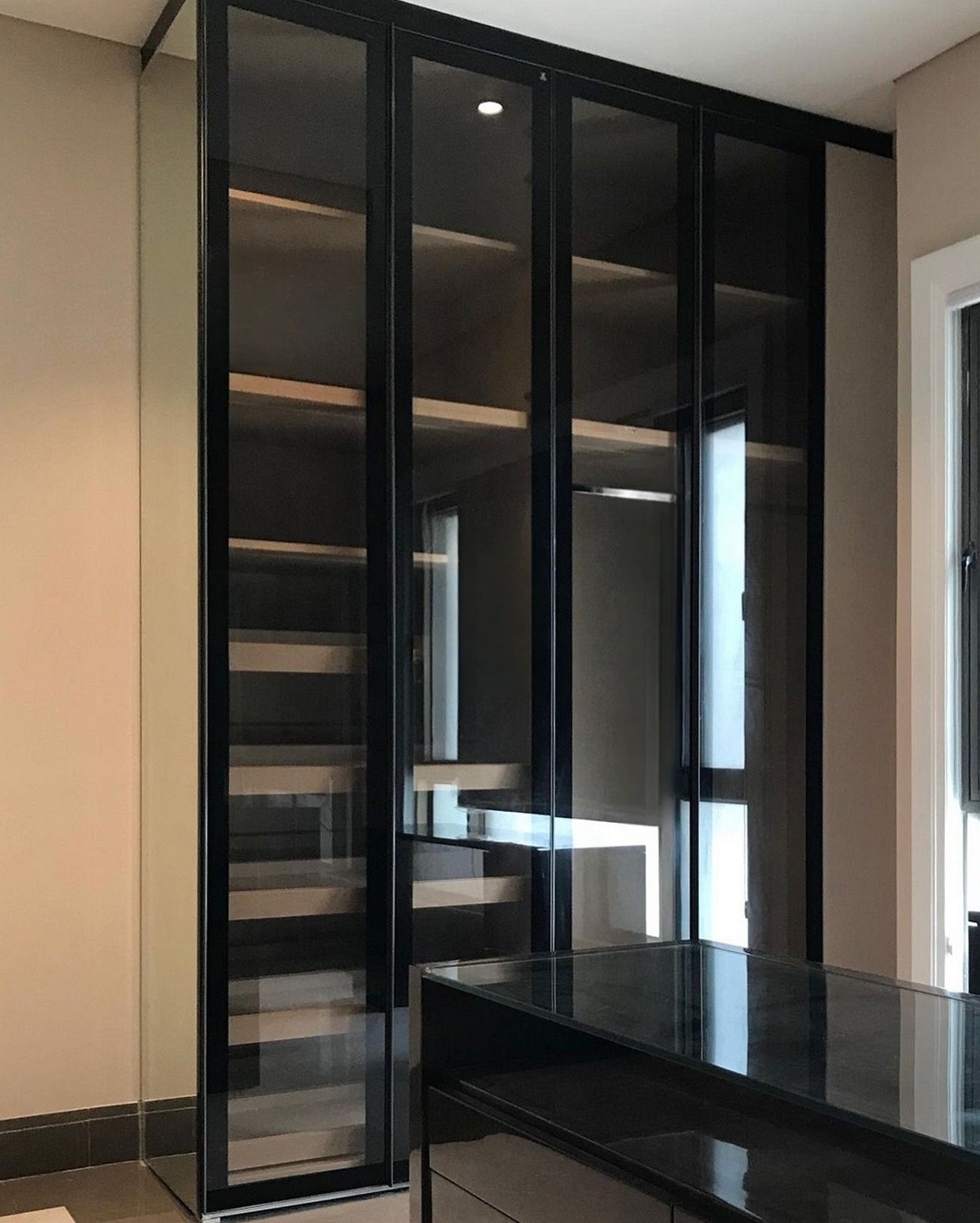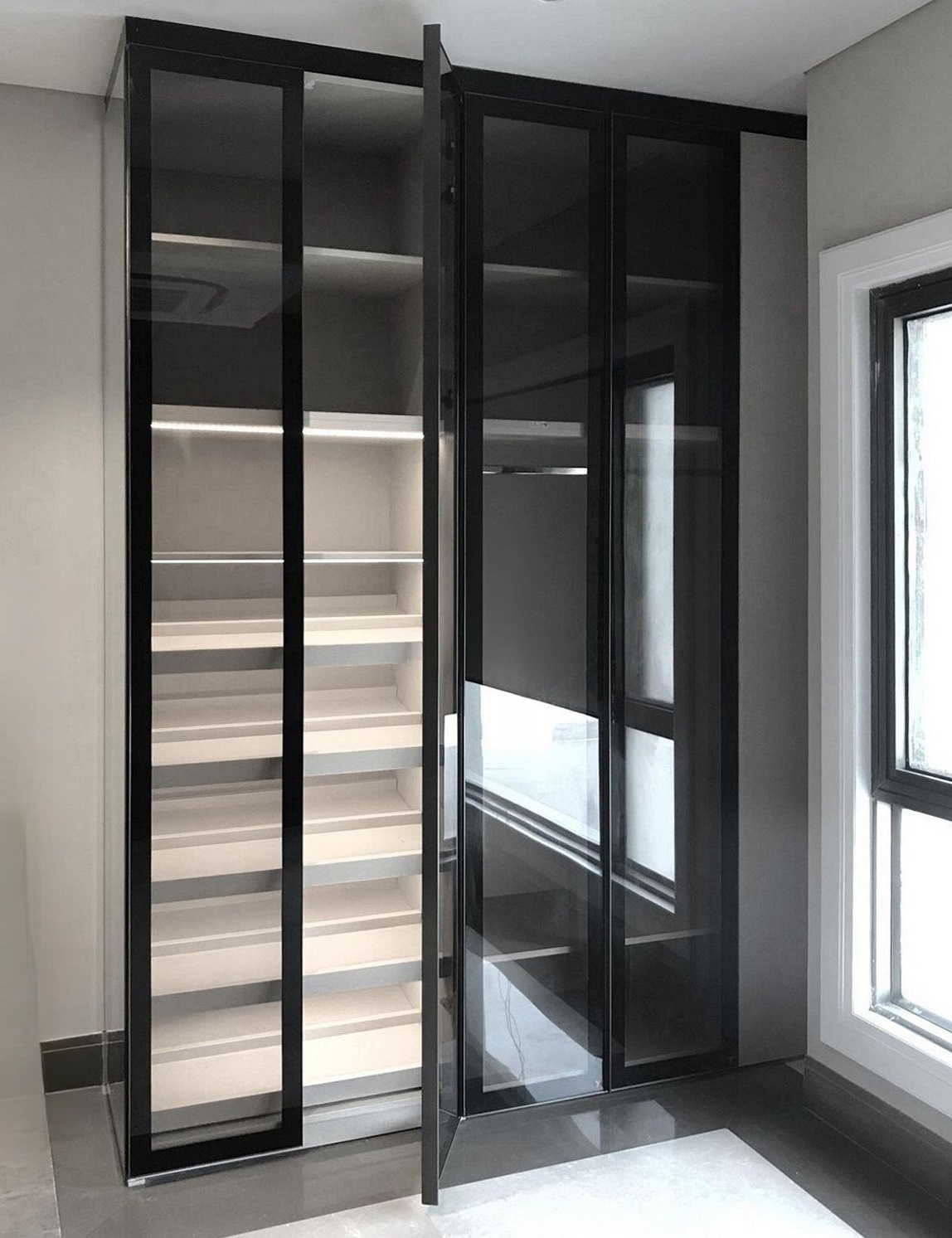 Шкаф с со стеклянными дверями в чёрном профиле с подсветкой «Модель 10»