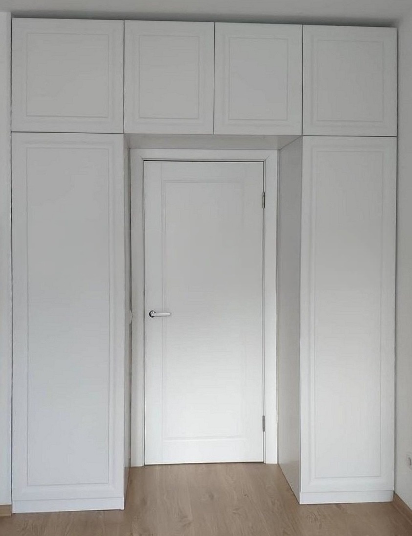 Белый шкаф над дверью с фрезерованным фасадом «Модель 1323»