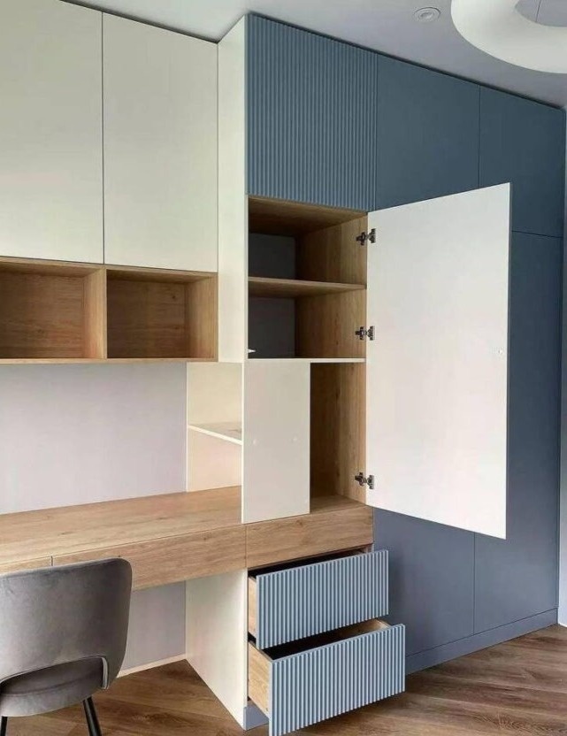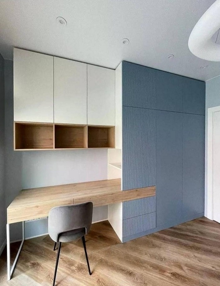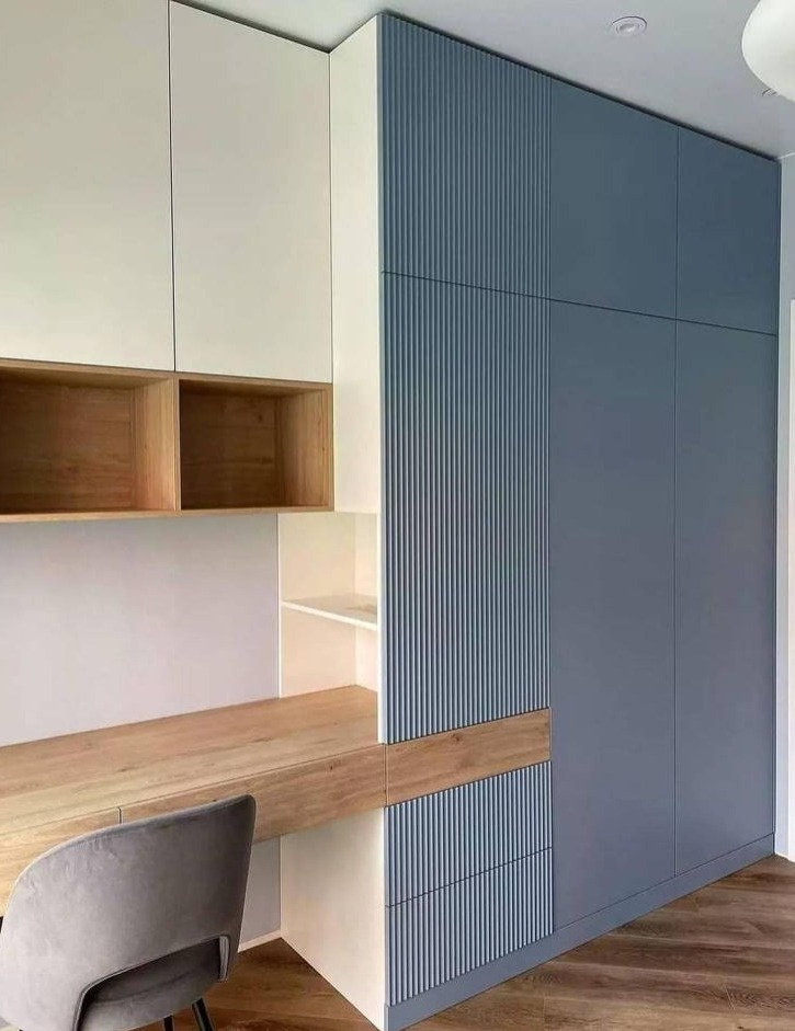 Голубой шкаф с фрезерованным фасадом и рабочей зоной «Модель 1293»