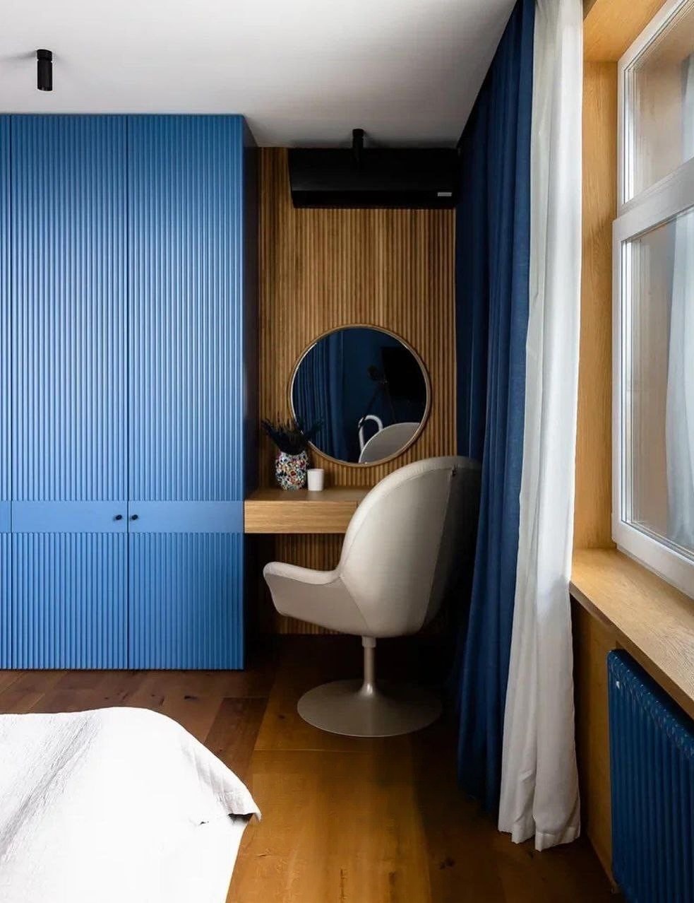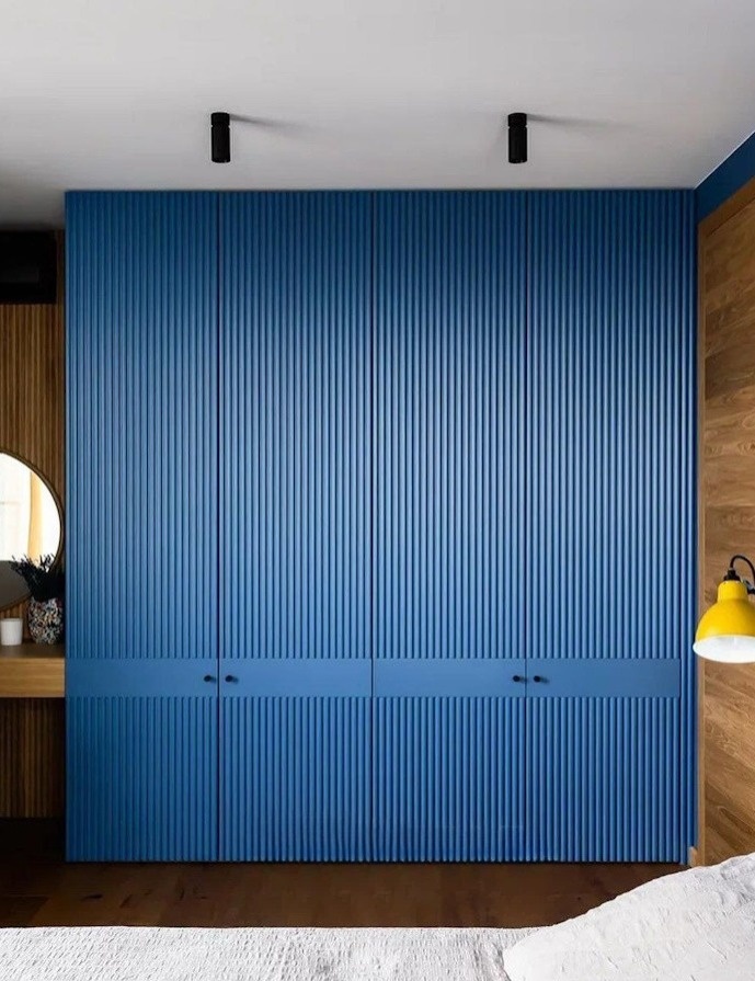Ярко-синий шкаф с фасадом волна в спальню «Модель 1257»