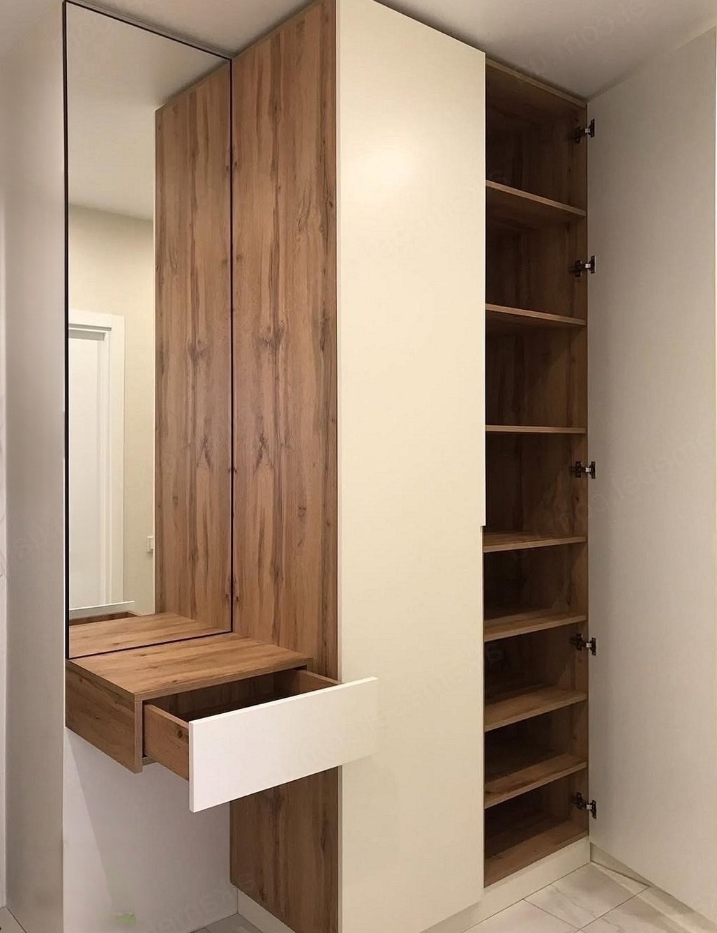 Встроенная прихожая с зеркалом и тумбой «Модель 265»