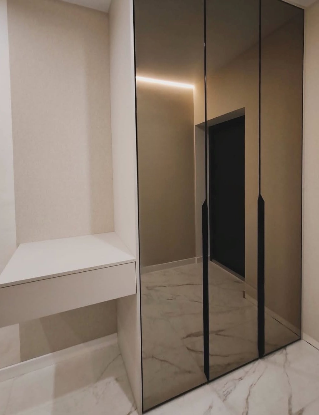 Бежевый шкаф с тонированными дверями-купе «Модель 550»