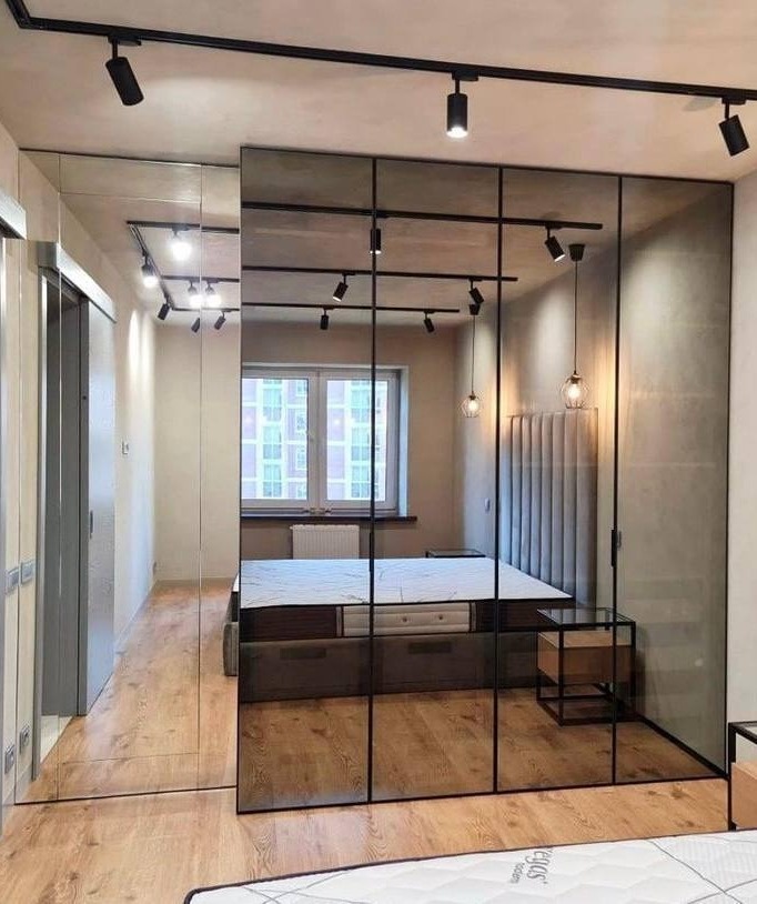 Встроенный шкаф с дверями-купе из зеркала хром «Модель 545»