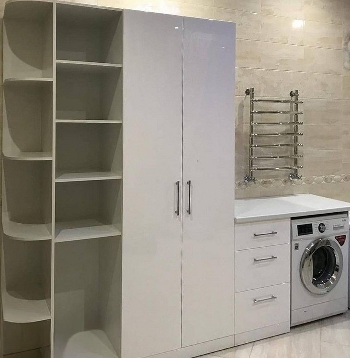 Встроенный белый шкаф со стеклянной витриной «Модель 336»