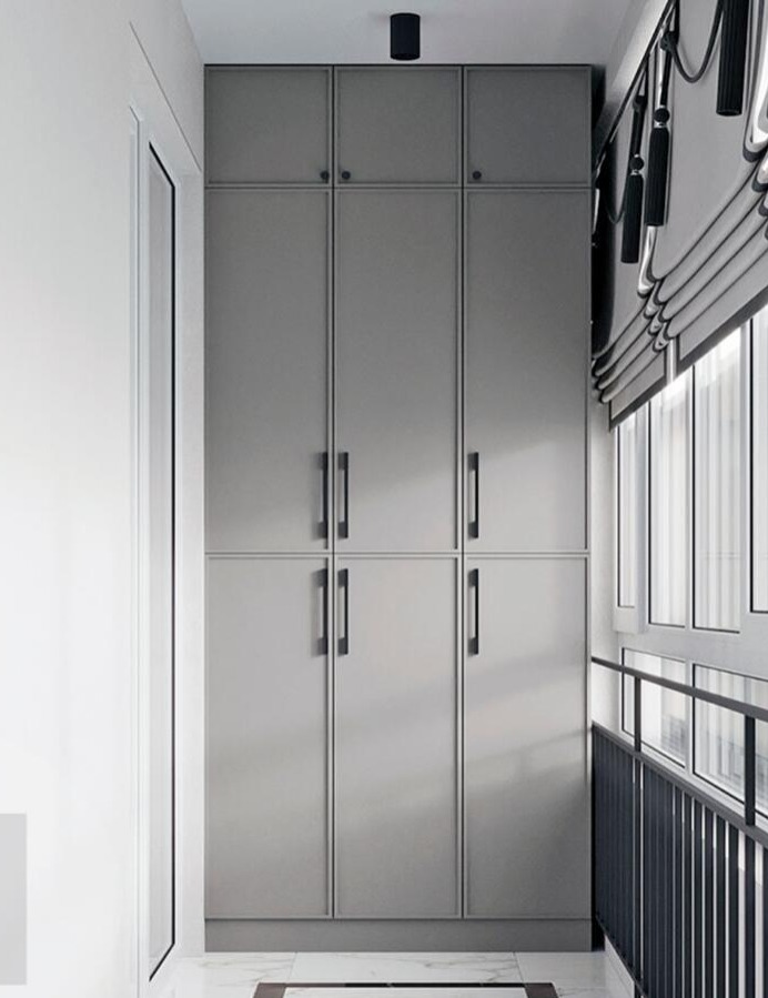 Серый 3х дверный шкаф с антресолью на балкон «Модель 1264»