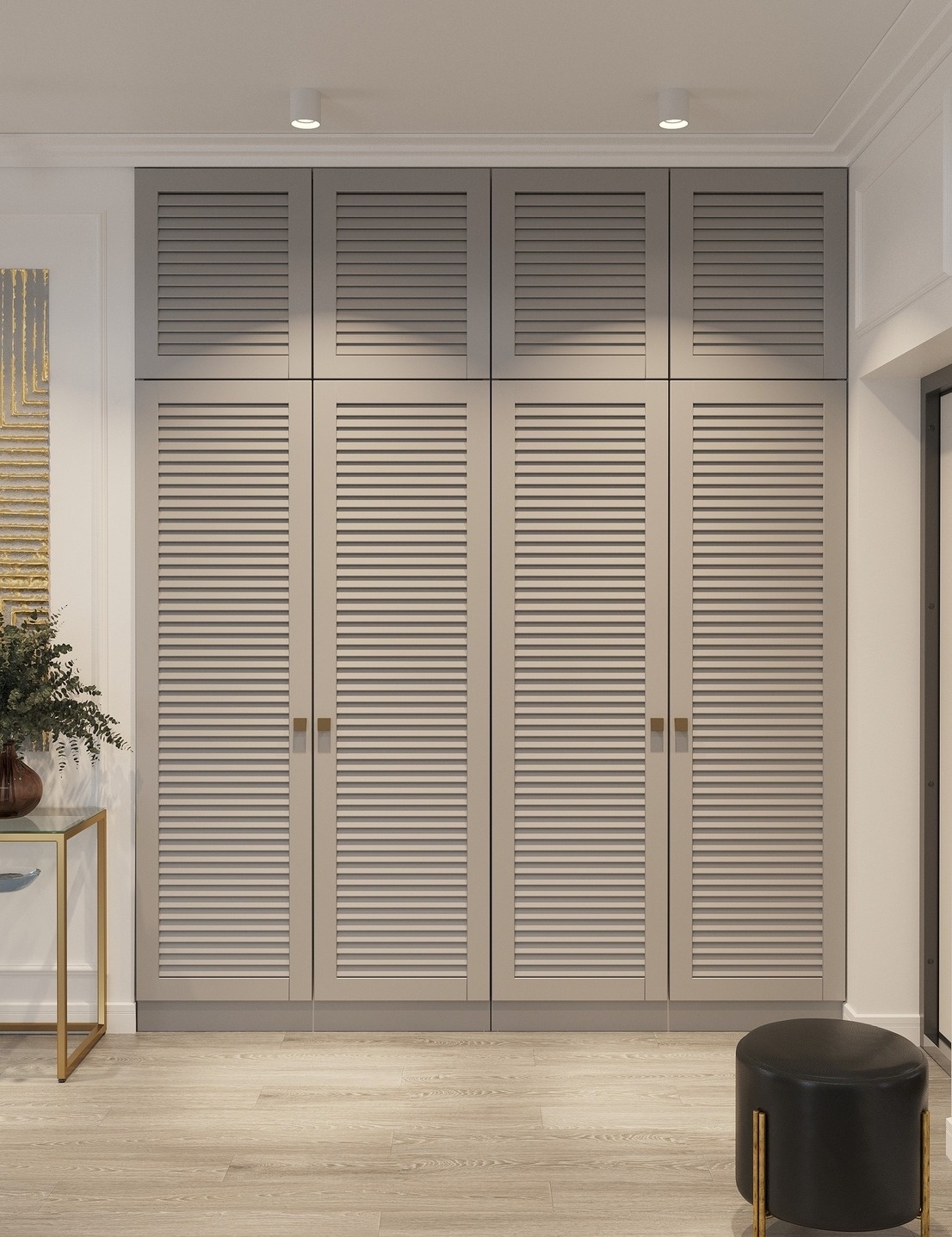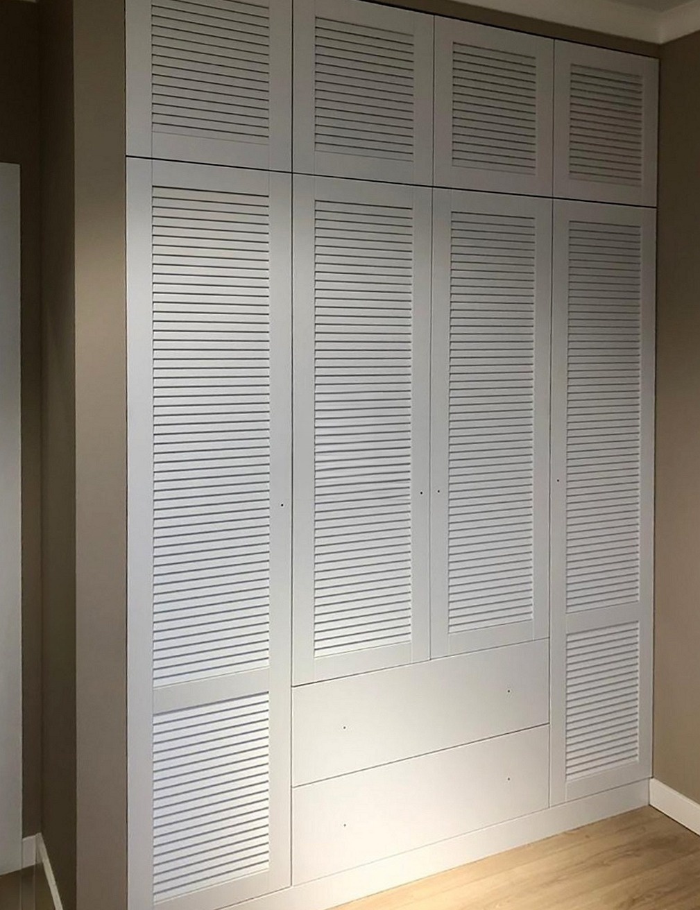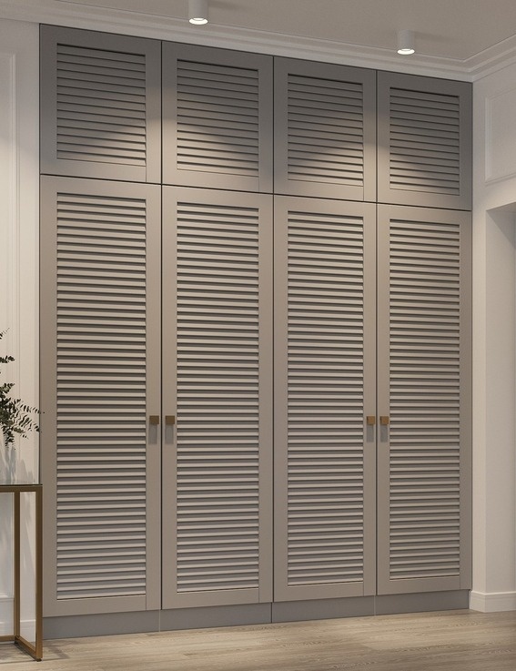 Встраиваемый в нишу 4х створчатый шкаф с жалюзийными дверями «Модель 1345»