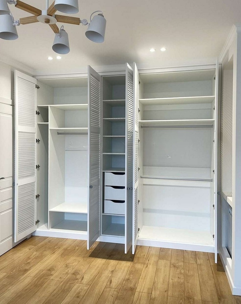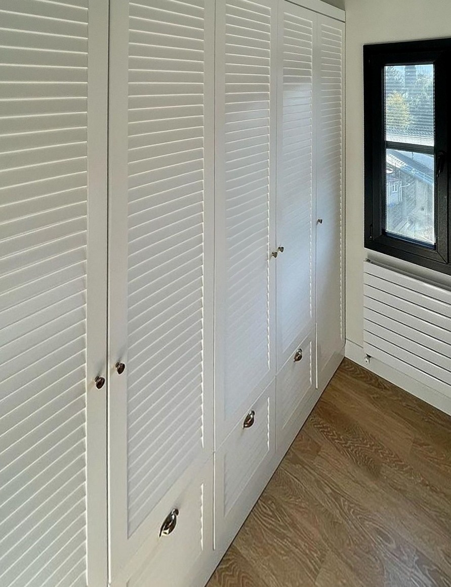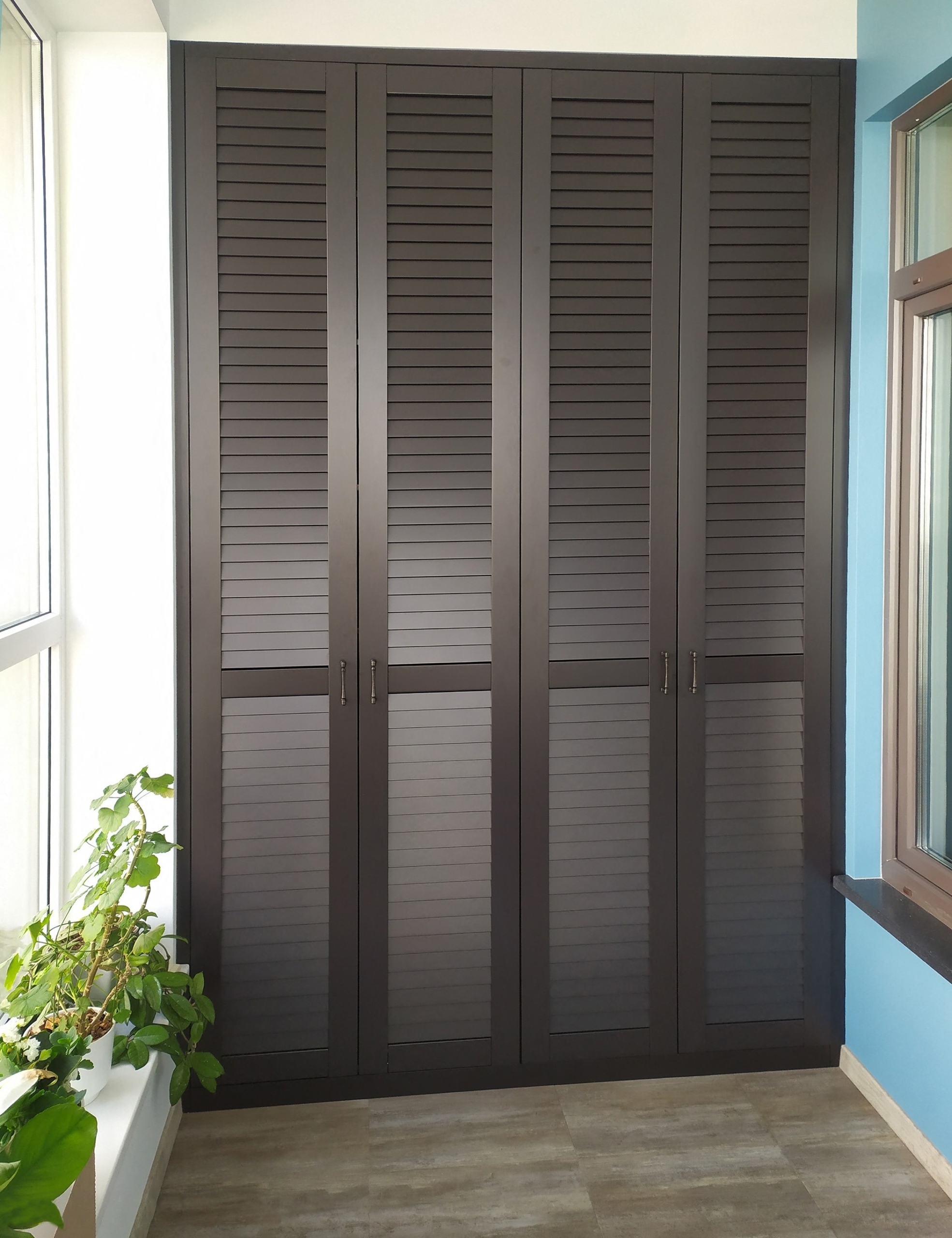 Встраиваемый в нишу 4х створчатый шкаф с жалюзийными дверями «Модель 1345»