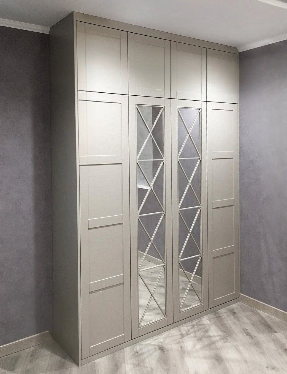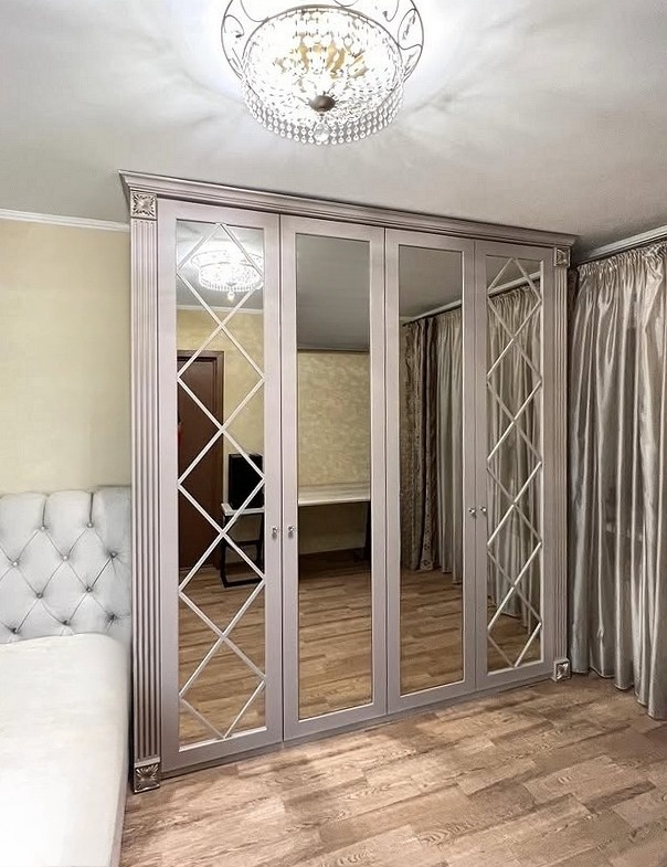 Классический серый шкаф с зеркальными дверями в спальню «Модель 1271»