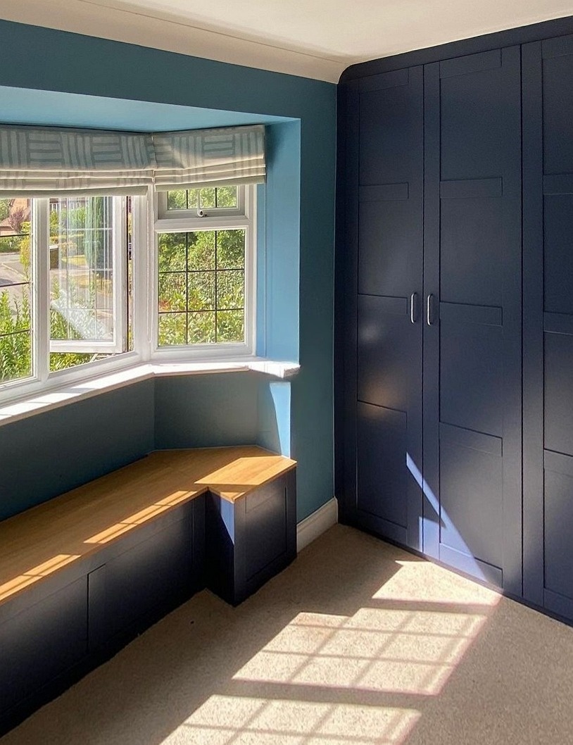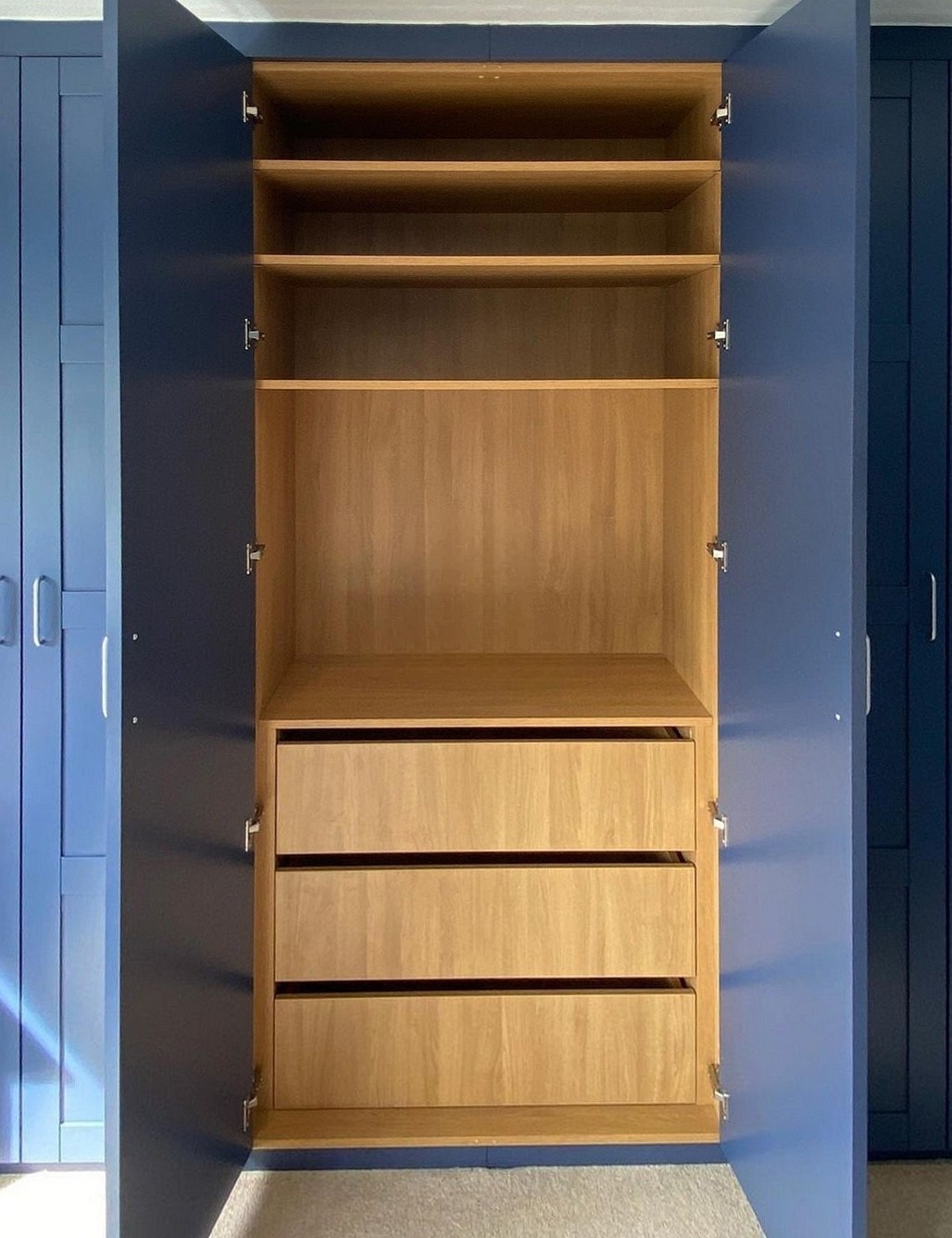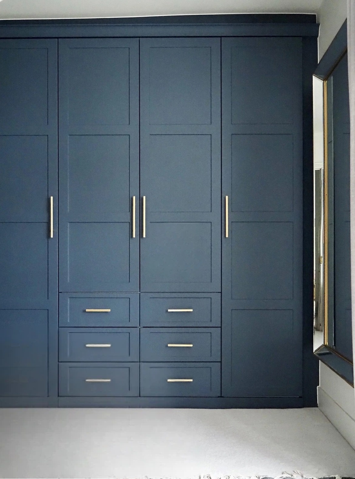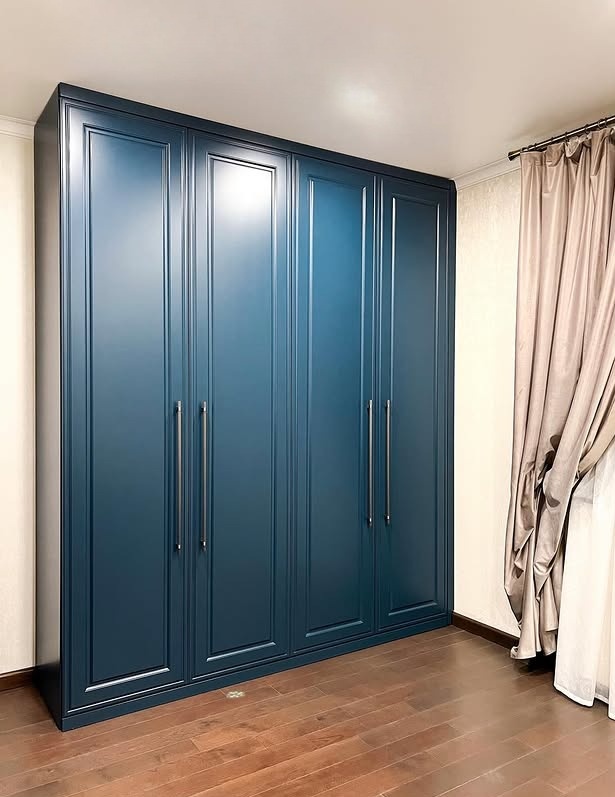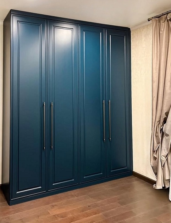 Классический шкаф темно-синего цвета в спальню «Модель 1344»