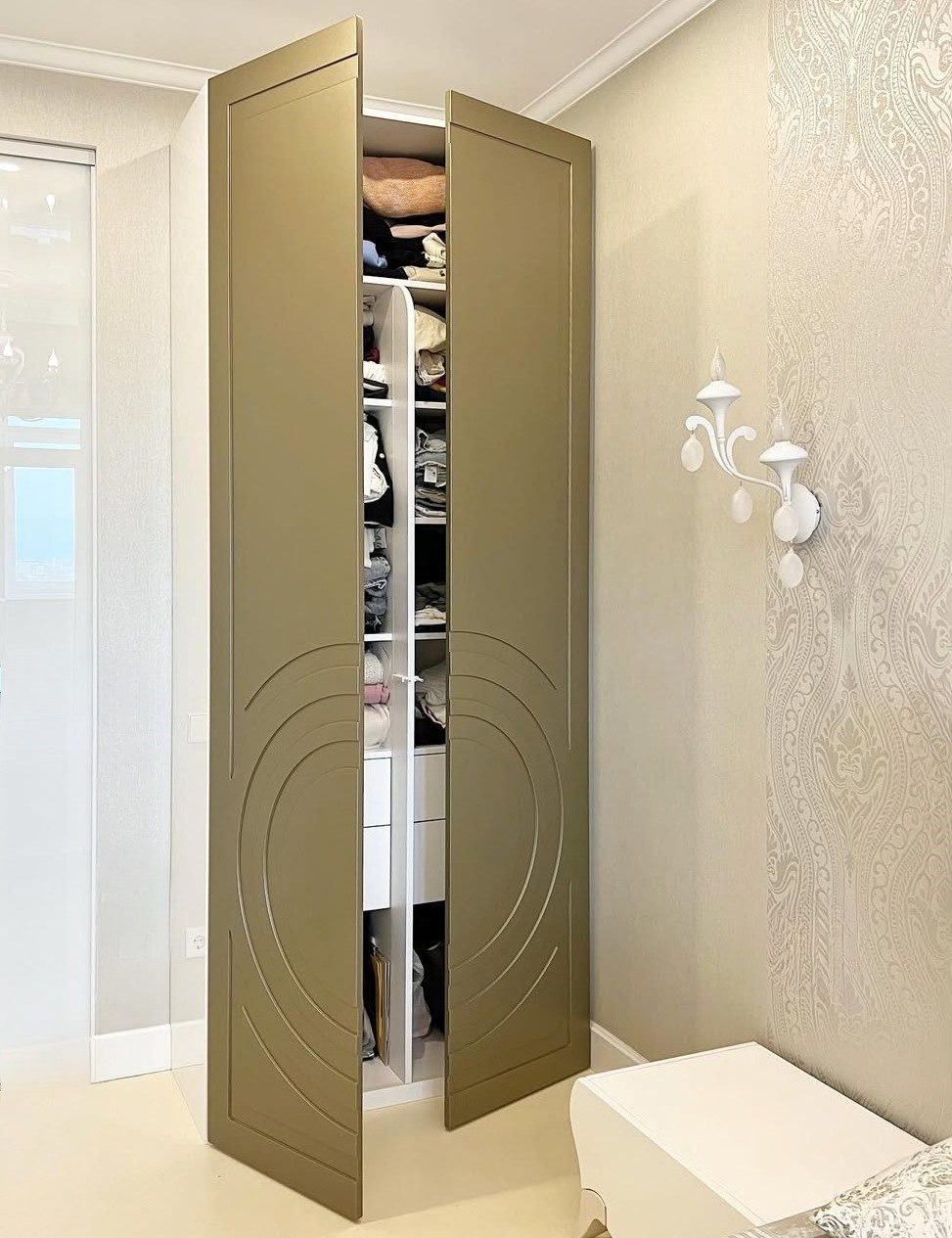 Узкий шкаф в спальню с фрезерованными дверями «Модель 37»