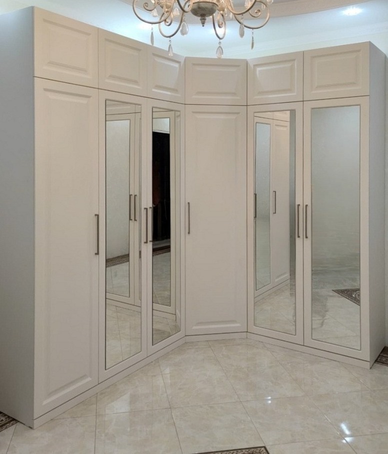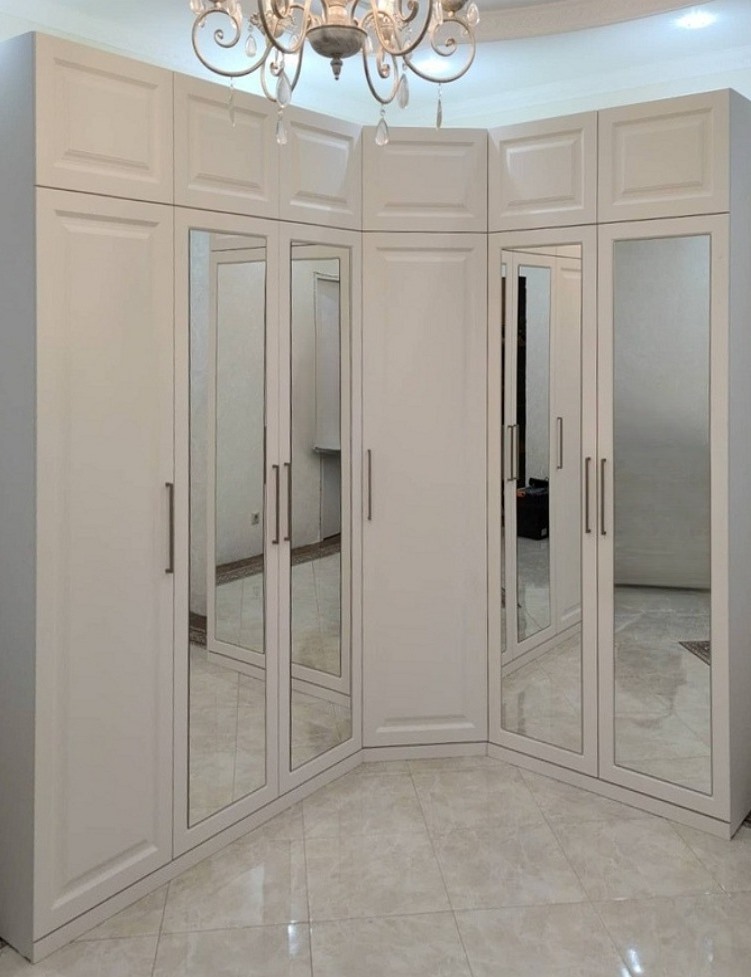 Белый трехдверный угловой радиусный шкаф «Модель 1251»