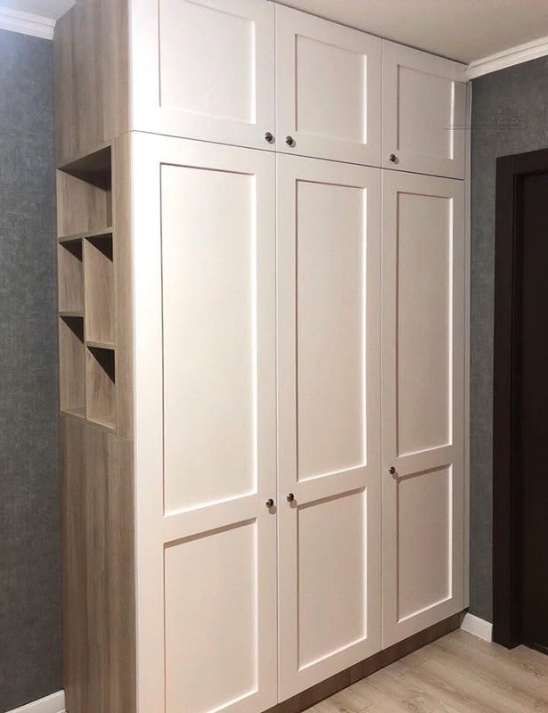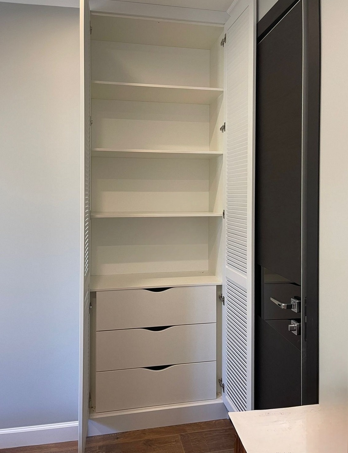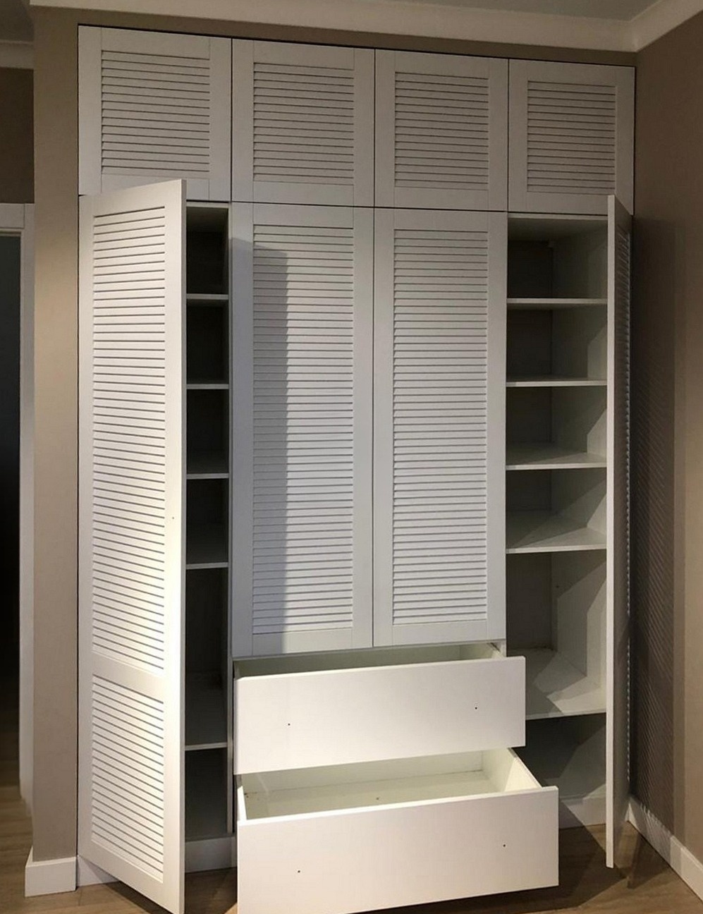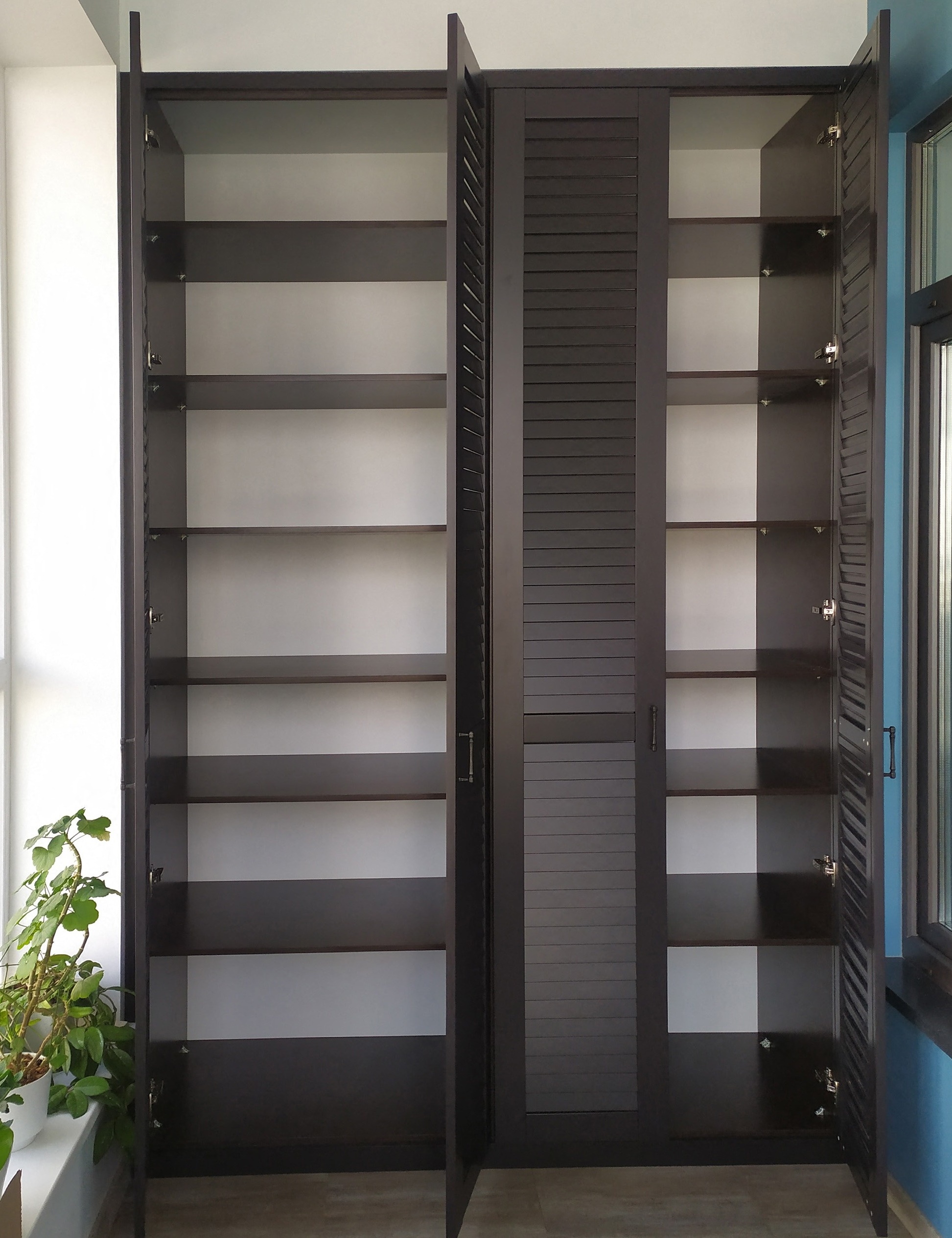 Встроенный в нишу жалюзийный шкаф с открытыми полками «Модель 1316»