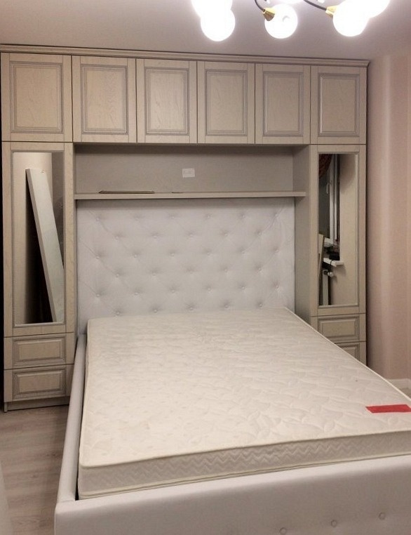 Классический серый шкаф вокруг кровати на заказ «Модель 1337»