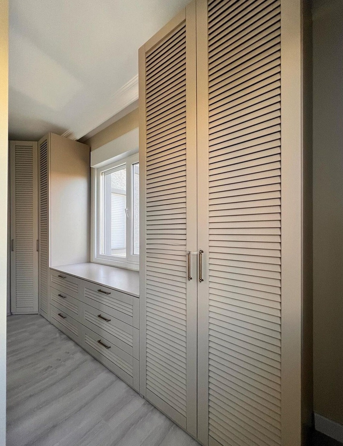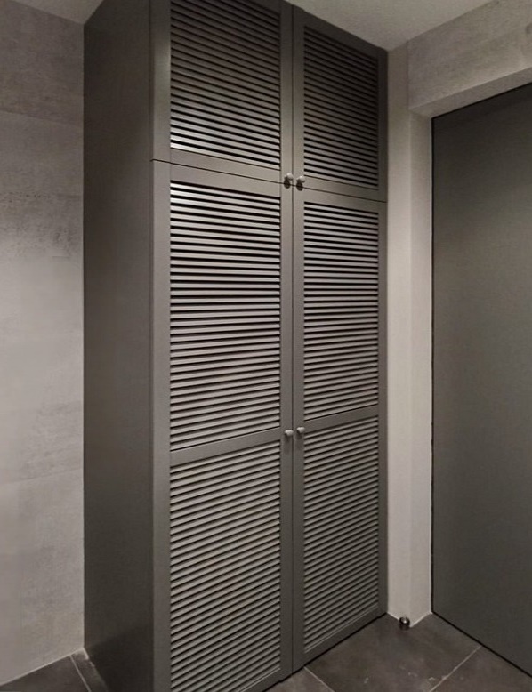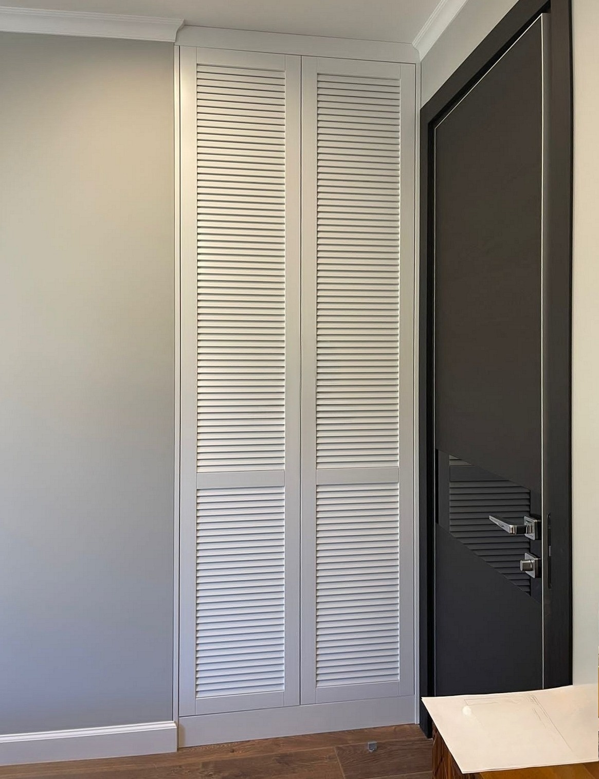 Узкий встроенный в нишу шкаф с жалюзийными дверцами «Модель 1333»