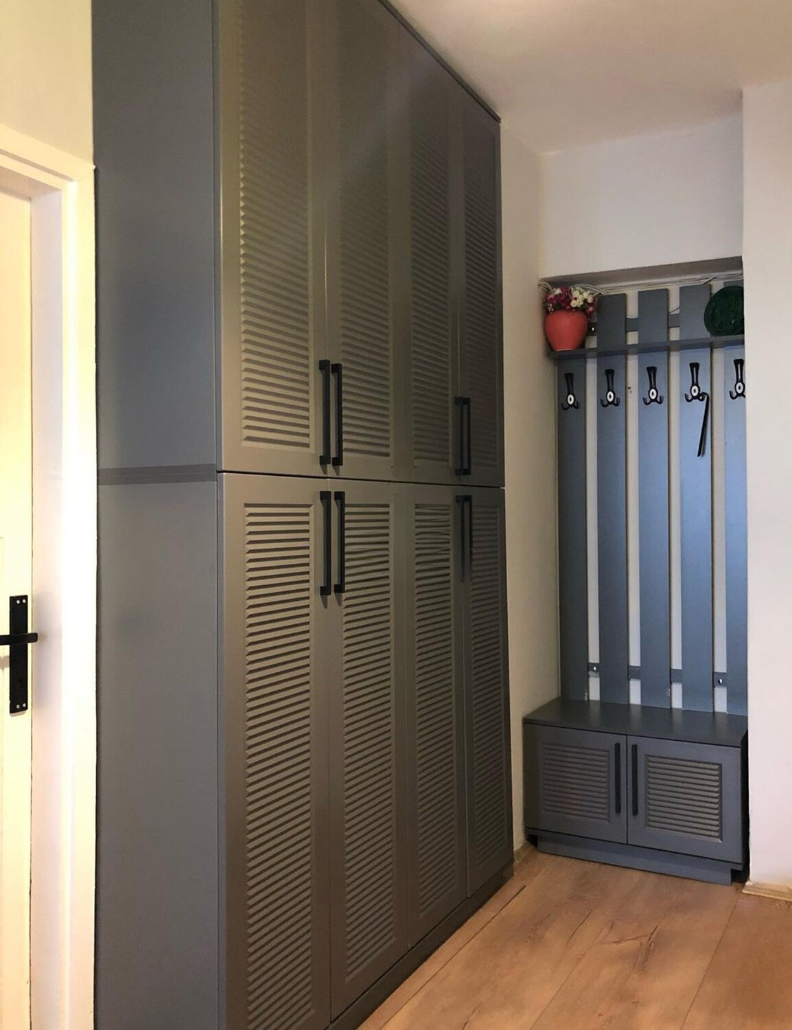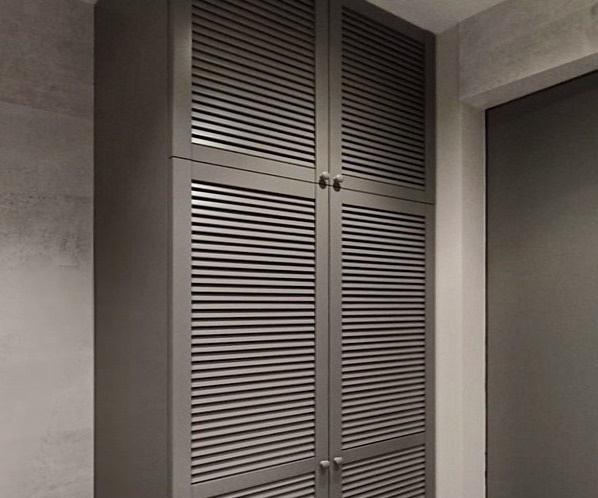 Шкаф цвета графит с жалюзийным фасадом в прихожую «Модель 1348»