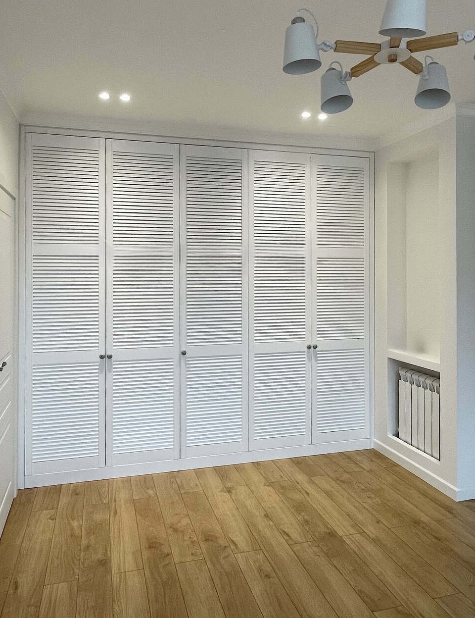 Широкий встроенный шкаф с жалюзийными дверями-книжка «Модель 1326»
