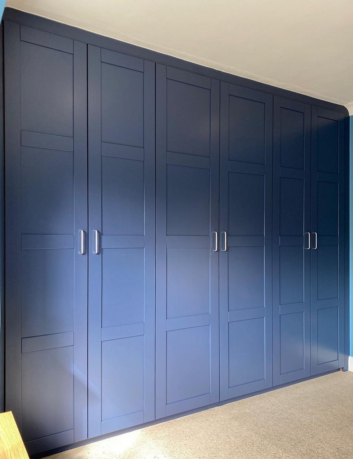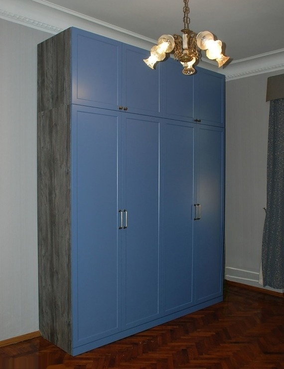 Широкий классический синий шкаф во всю стену «Модель 1320»