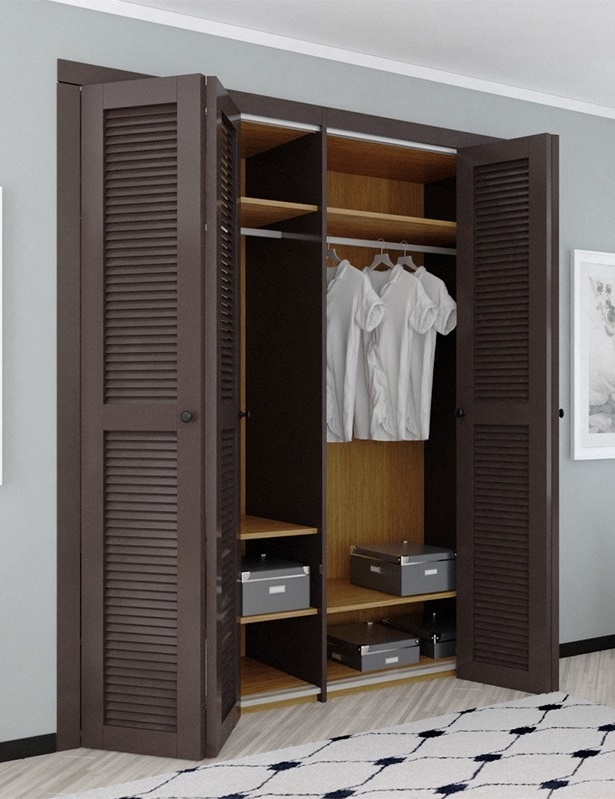 Темно-коричневый распашной шкаф с жалюзийными дверцами «Модель 1321»