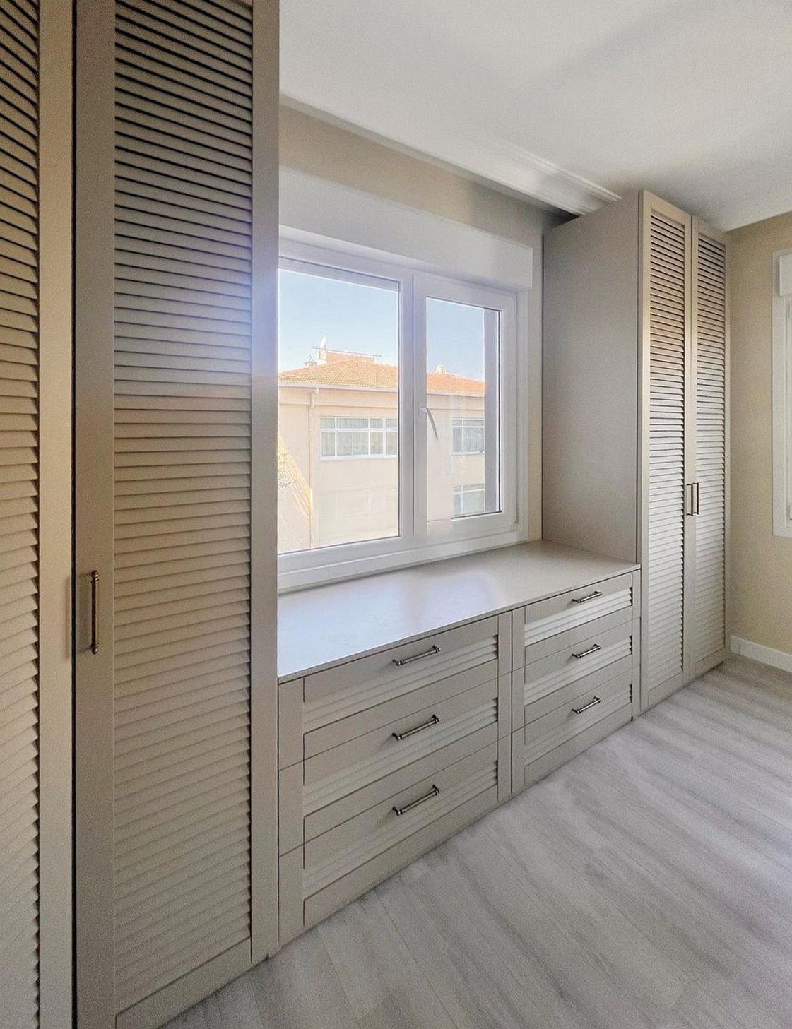 Широкий жалюзийный распашной шкаф вокруг окна «Модель 1309»