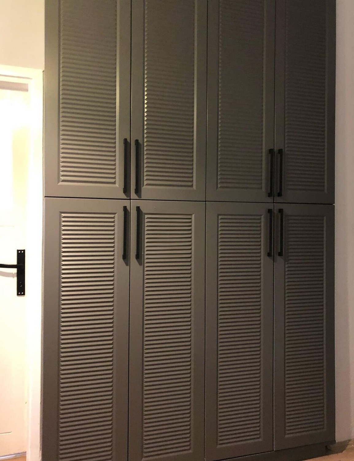 Встроенный шкаф с жалюзийными зелёными дверями «Модель 1268»