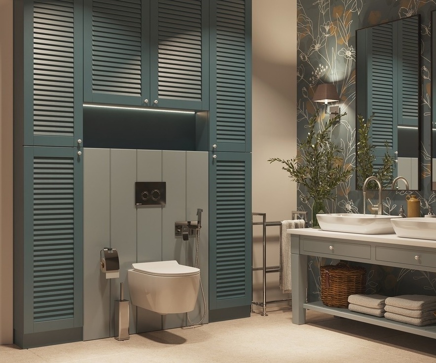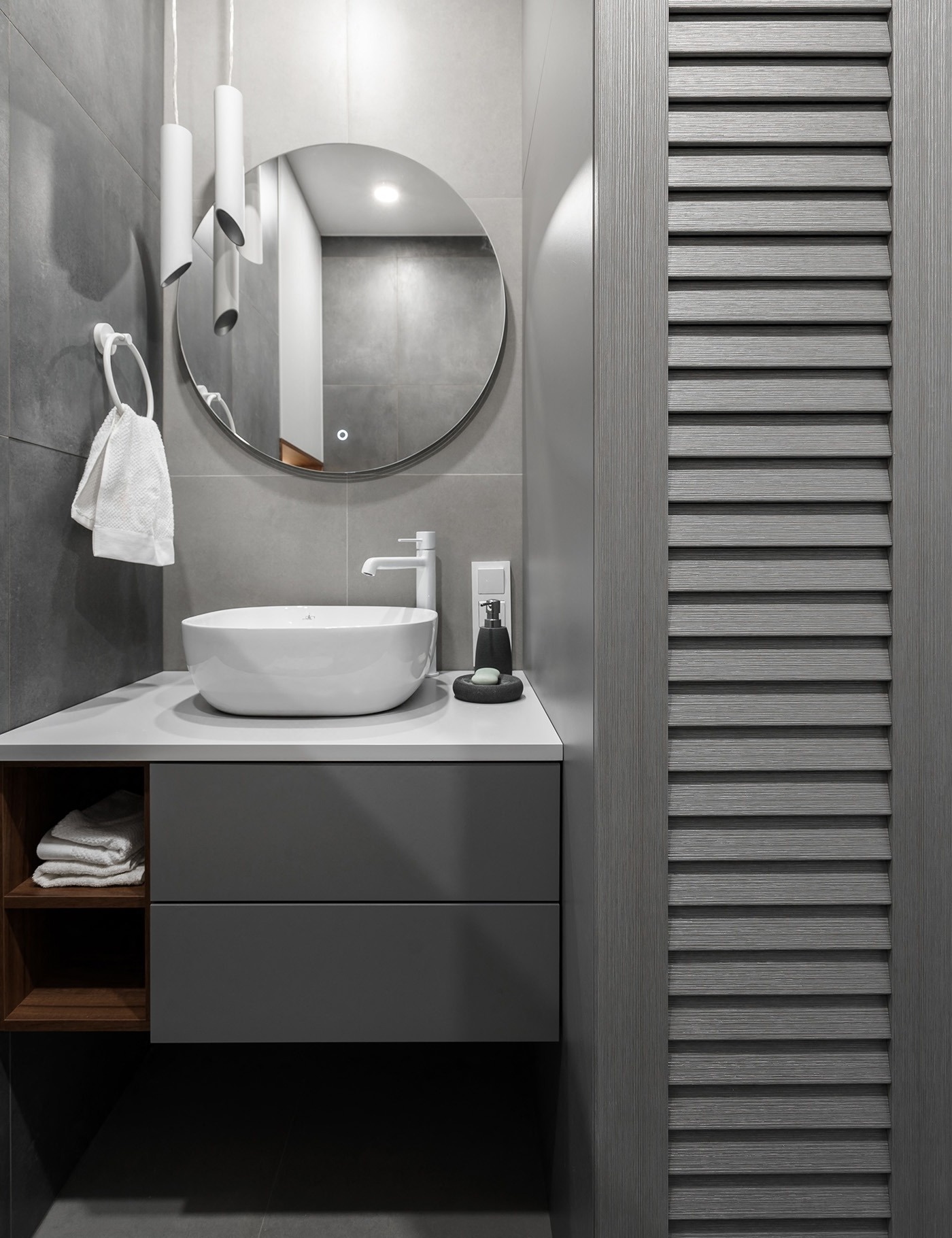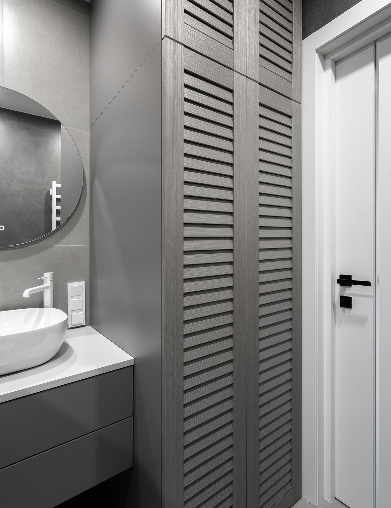 Серый жалюзийный шкаф до потолка в ванную «Модель 1295»