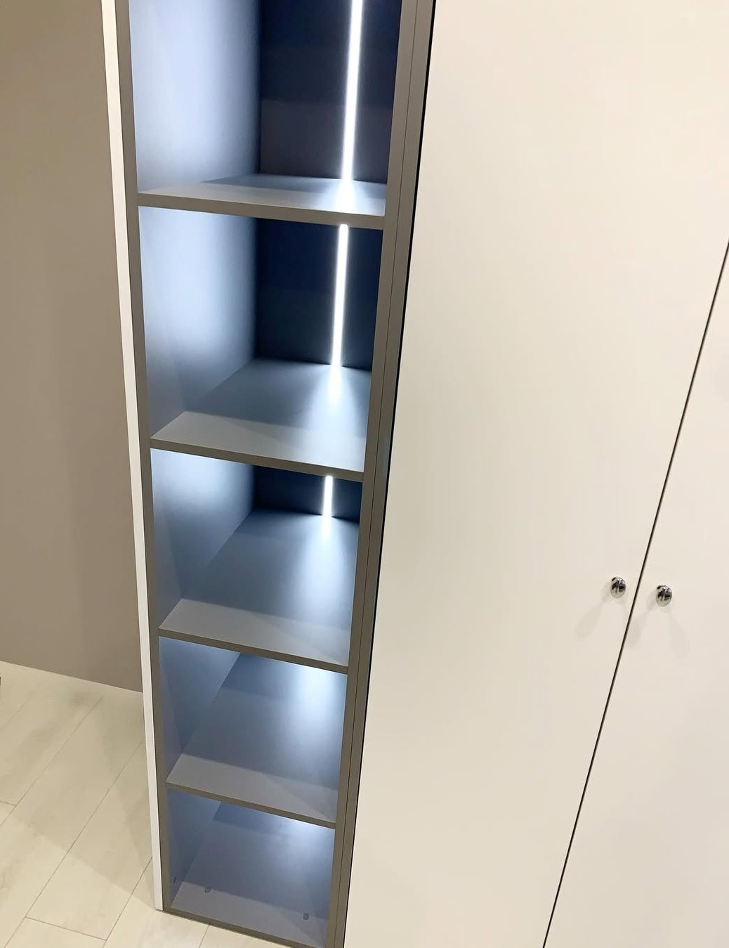 Белый шкаф на заказ с боковой витриной и подсветкой «Модель 195»