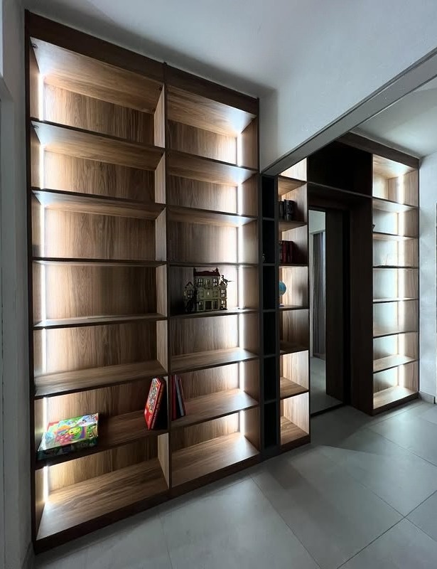 Шкаф под потолок с открытыми полками в скандинавском стиле «Модель 593»