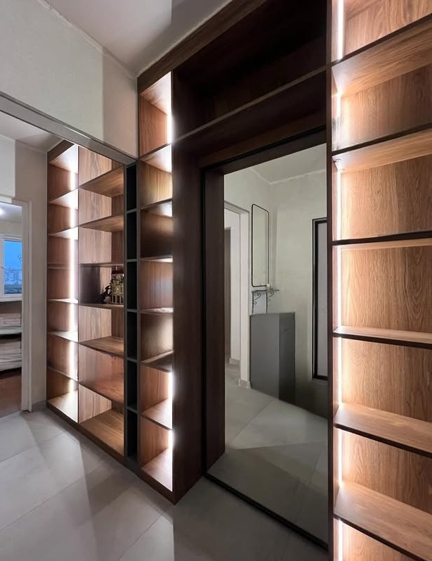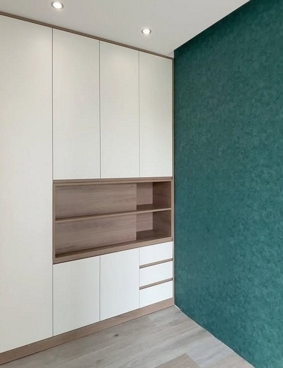 Встроенный в спальню шкаф с открытыми полками посередине «Модель 544»