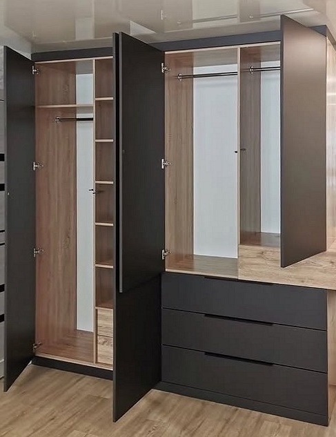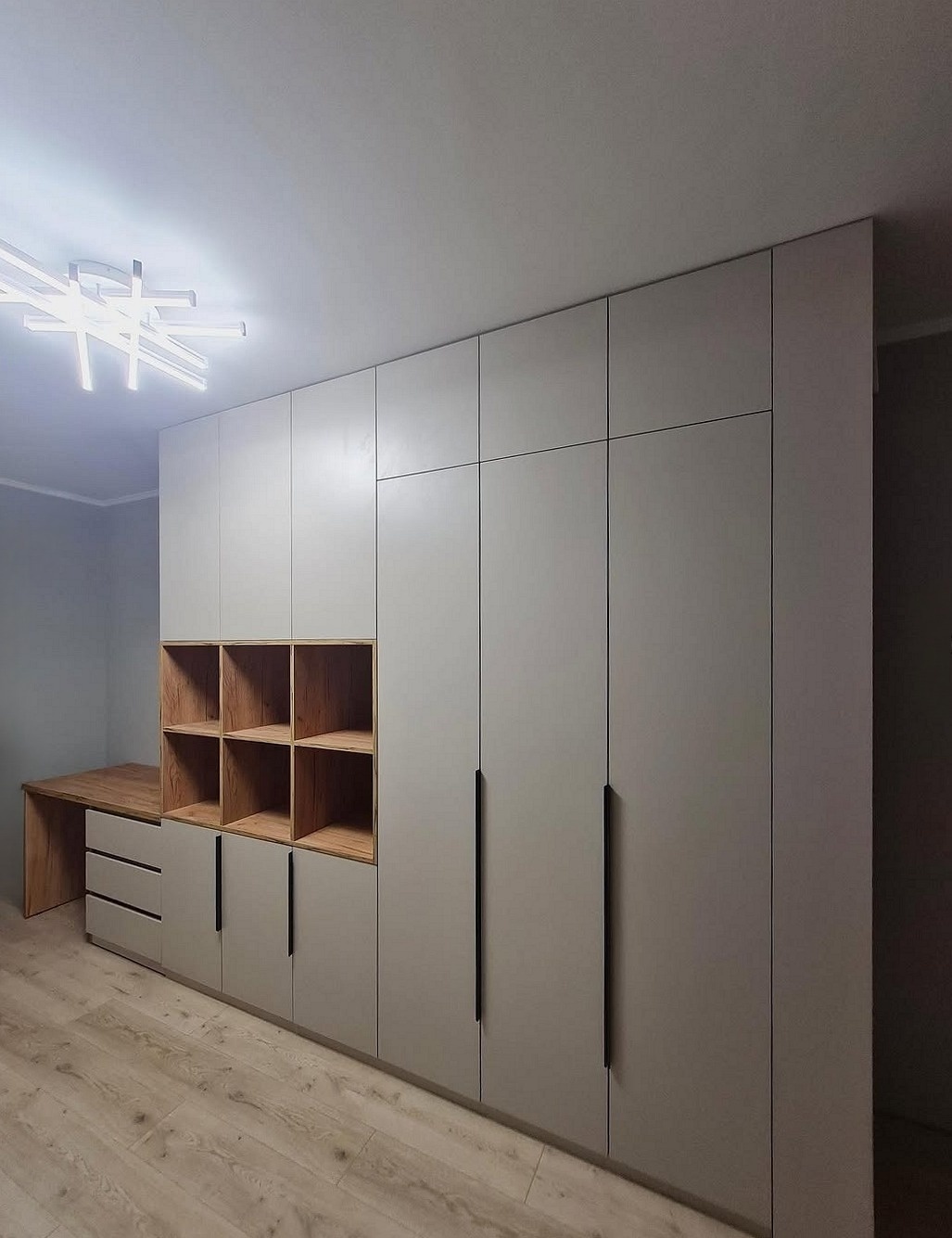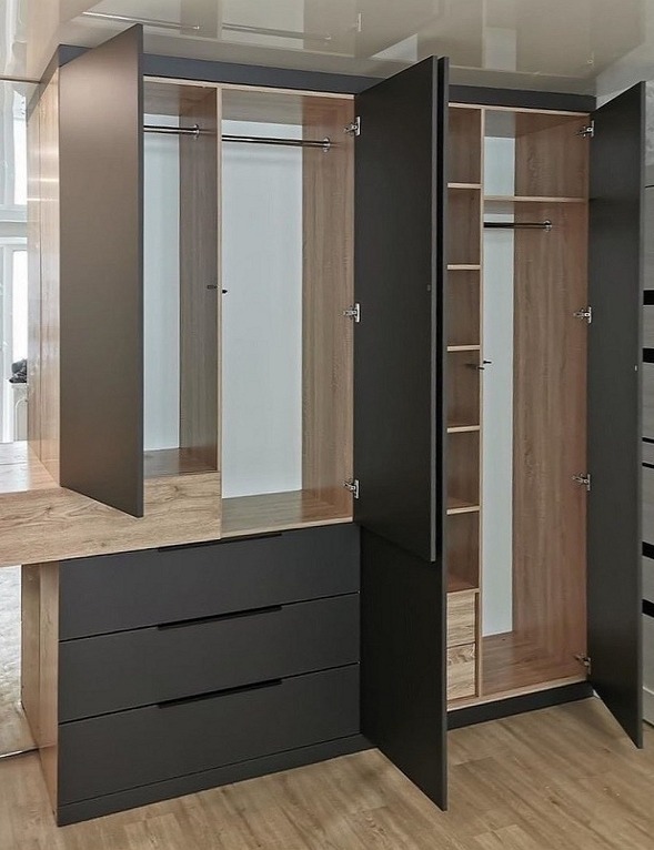 Серый шкаф из МДФ с открытой секцией и вешалкой «Модель 555»