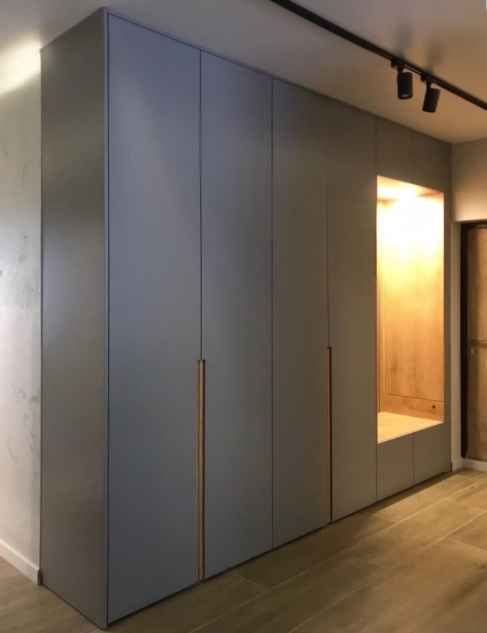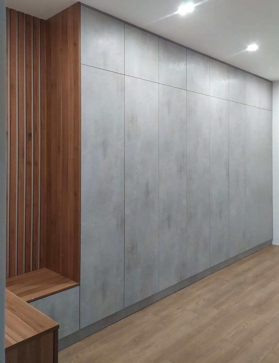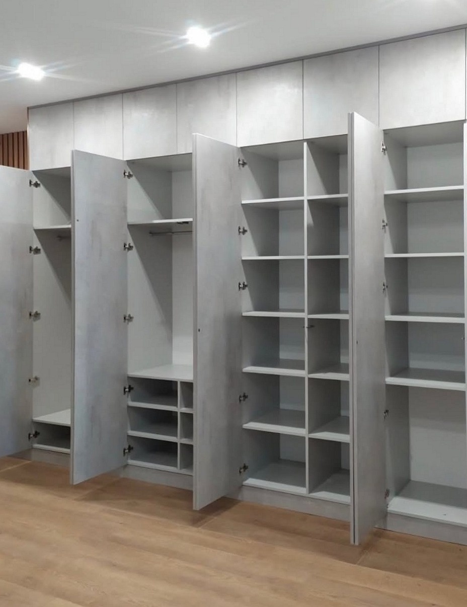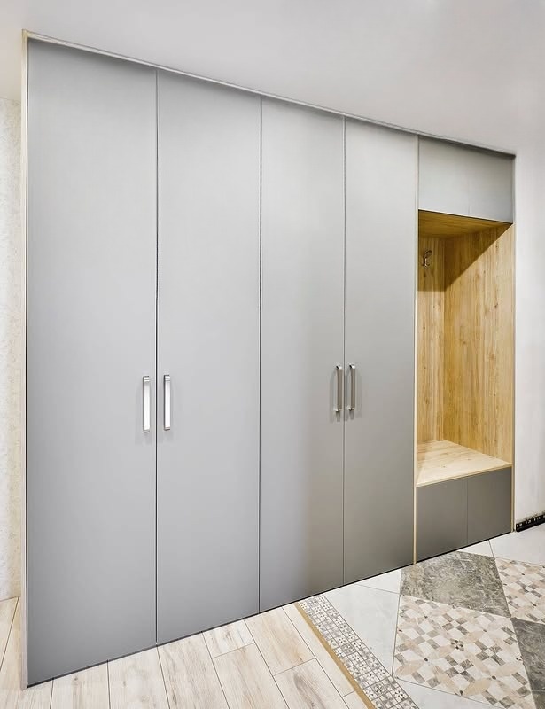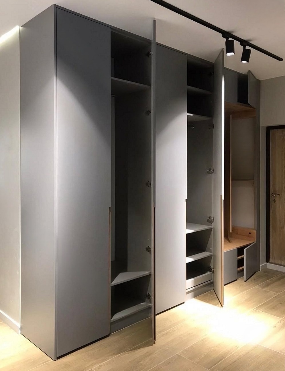 Большая встроенная прихожая серого цвета из ЛДСП «Модель 611»