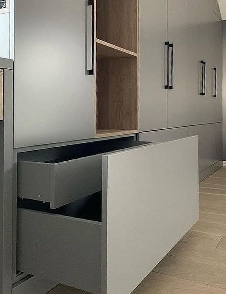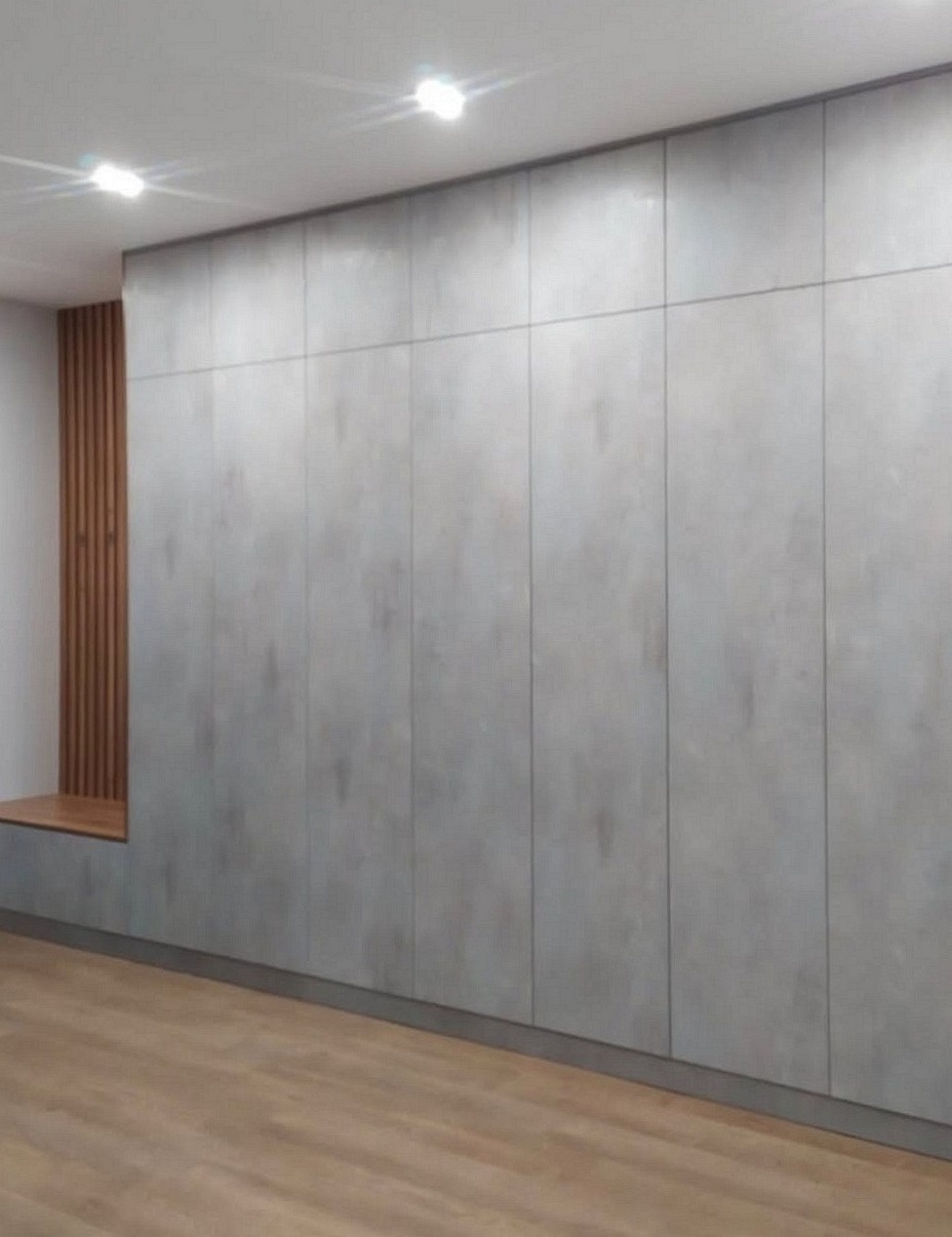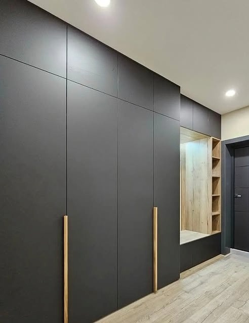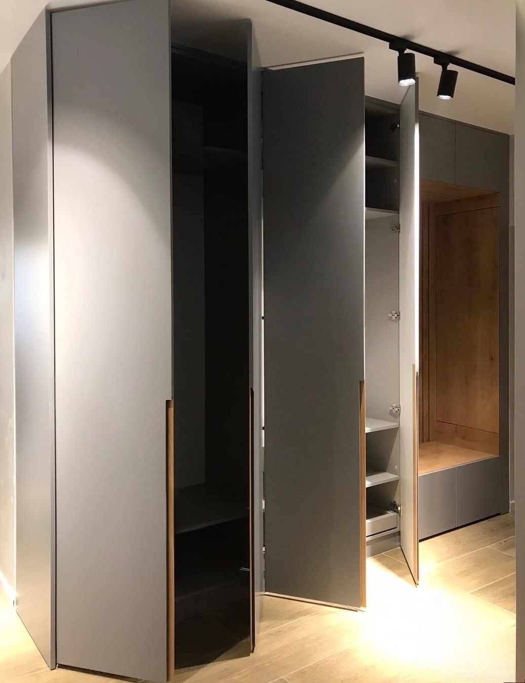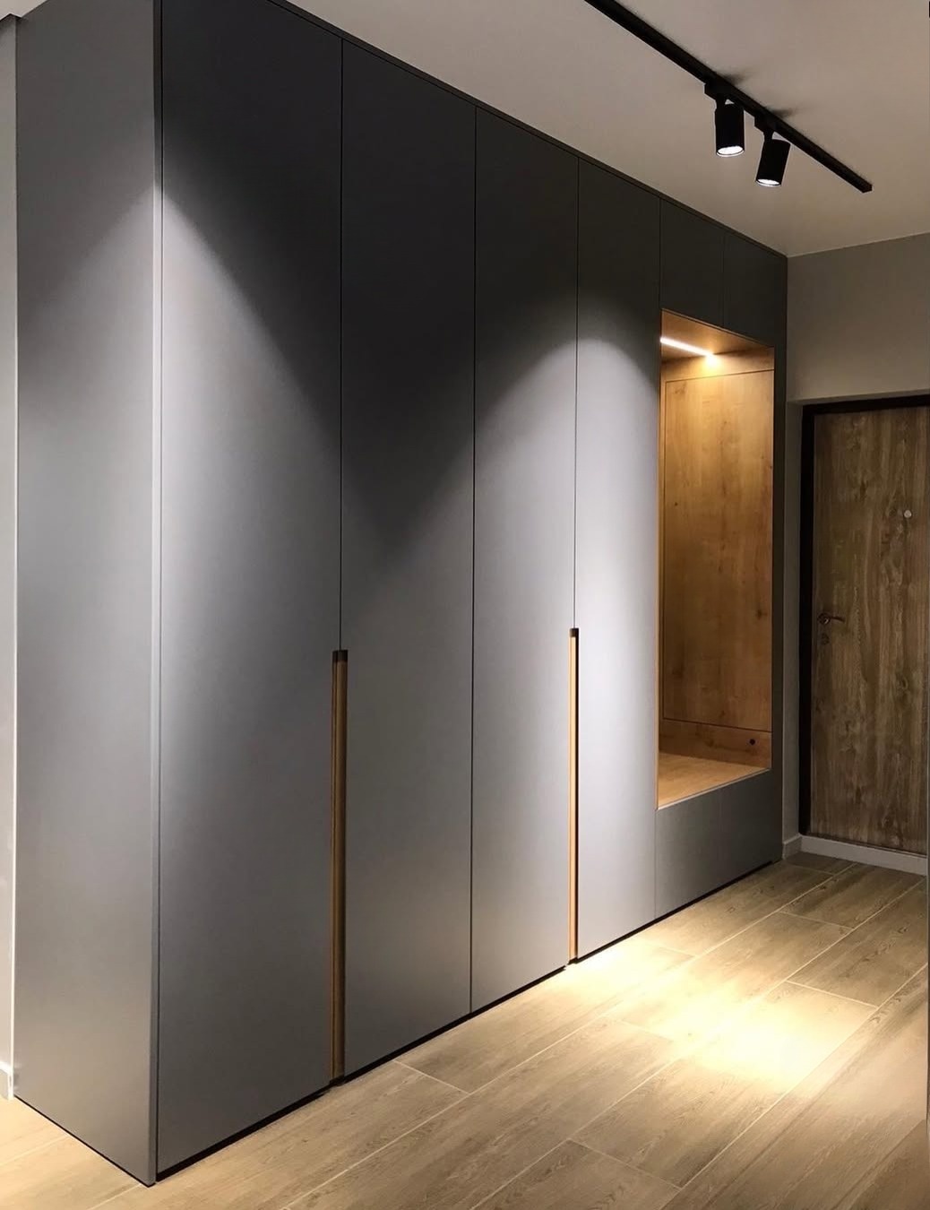 Большая встроенная прихожая серого цвета из ЛДСП «Модель 611»