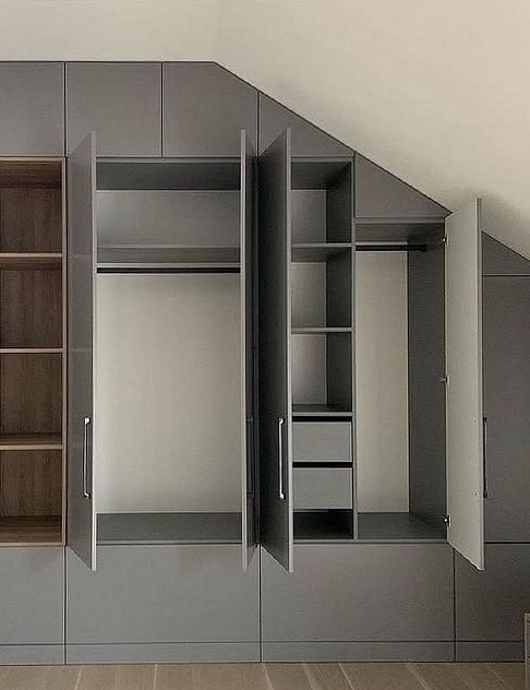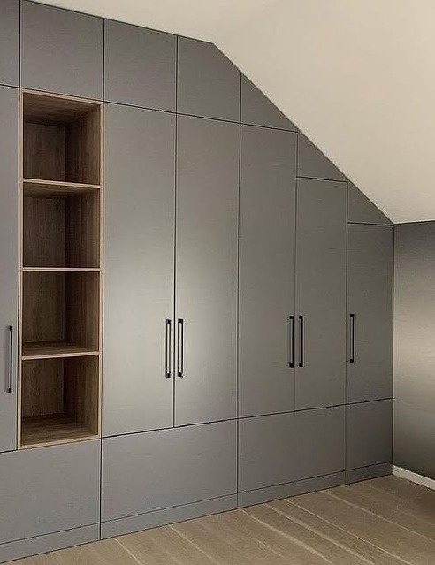 Встроенный шкаф с открытыми полками на мансарду «Модель 151»