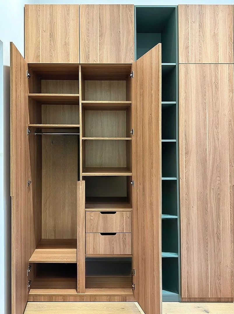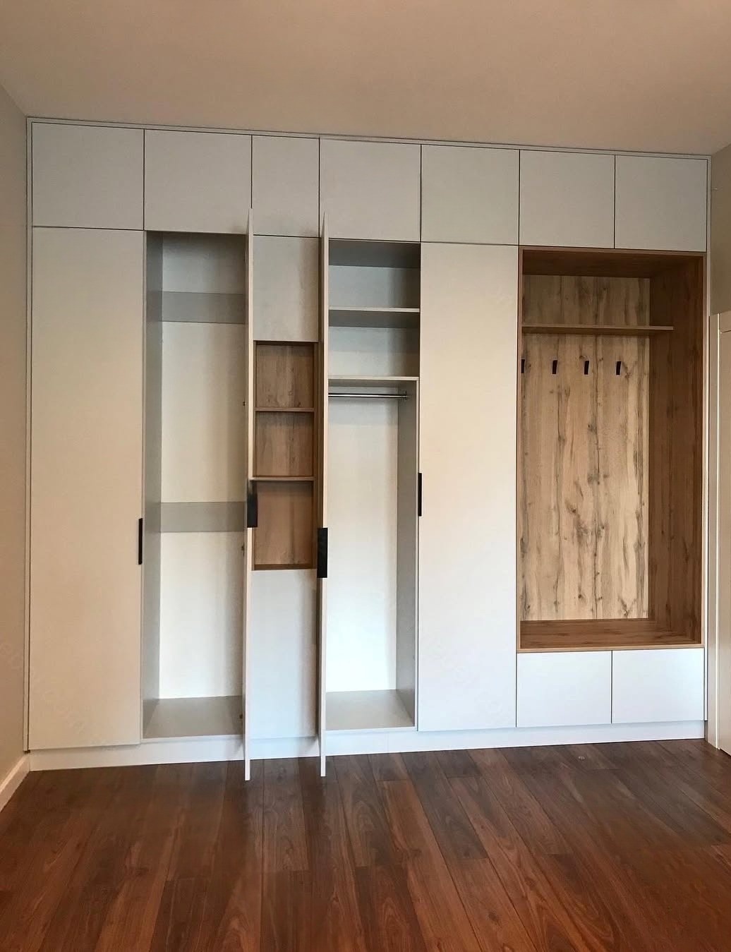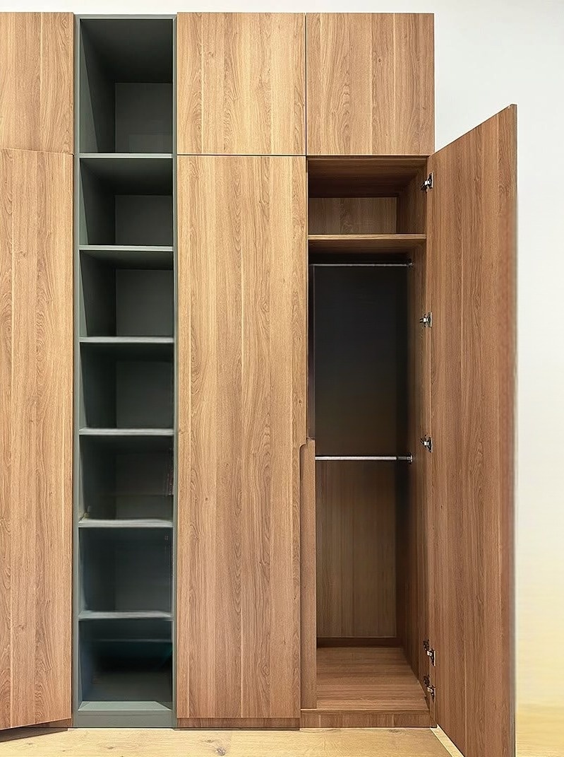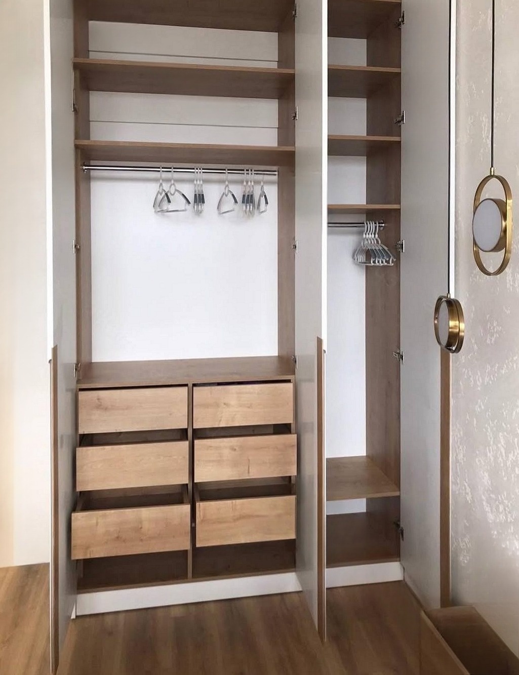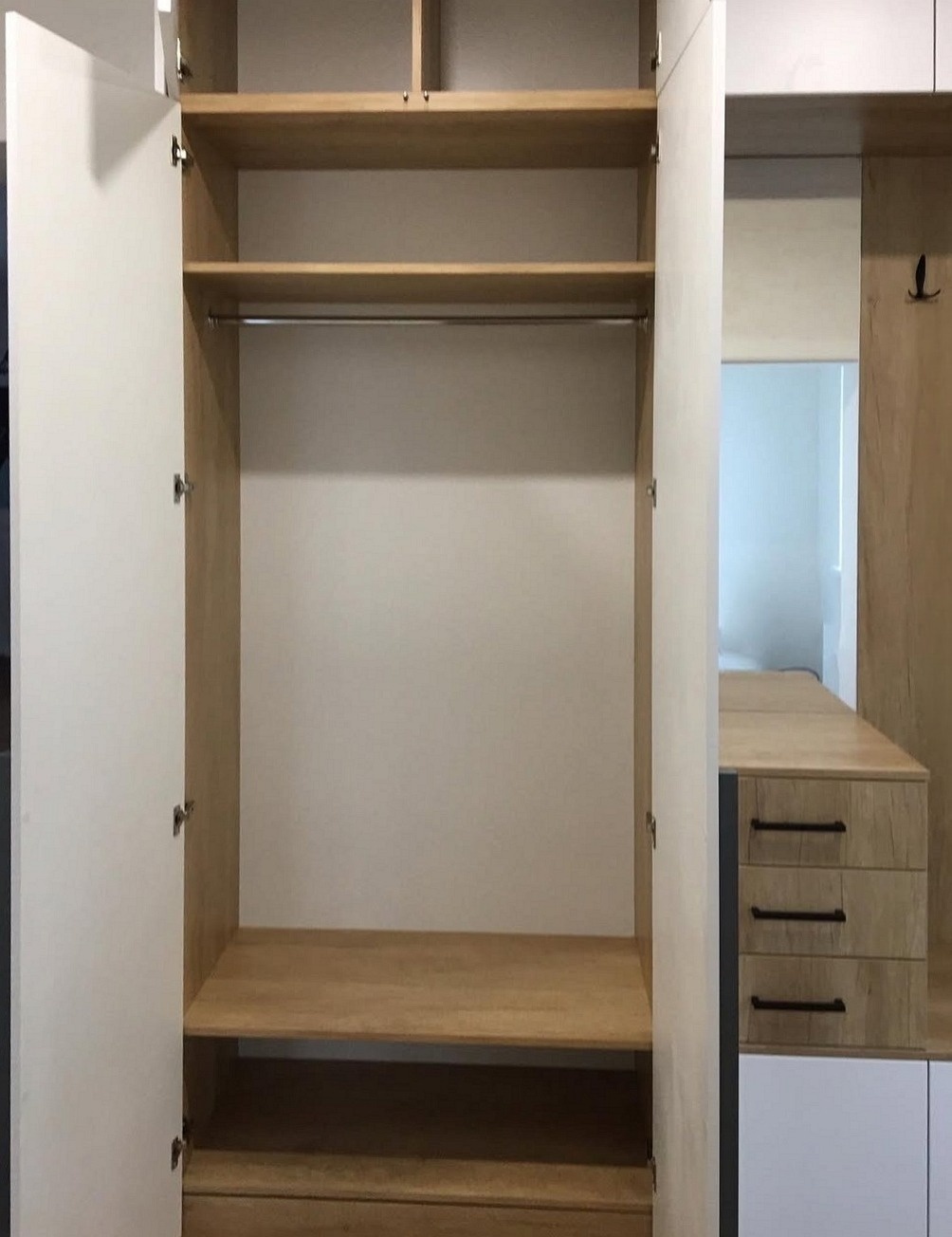 Двухдверный встроенный шкаф из МДФ с открытой вешалкой «Модель 600»