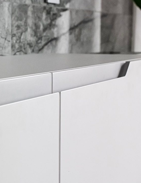 Серый распашной шкаф с интегрированными ручками «Модель 1220»