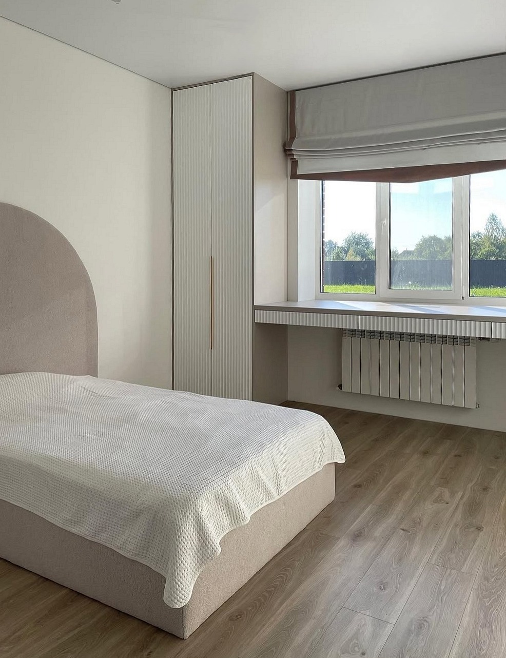 Белый шкаф с нишей для кровати и фрезерованными дверями «Модель 1226»