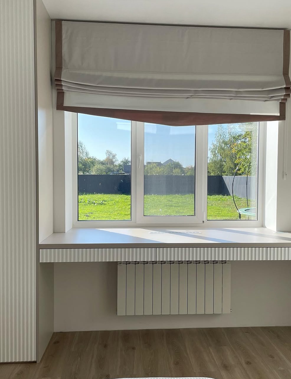 П-образный белый жалюзийный шкаф вокруг двери «Модель 1277»
