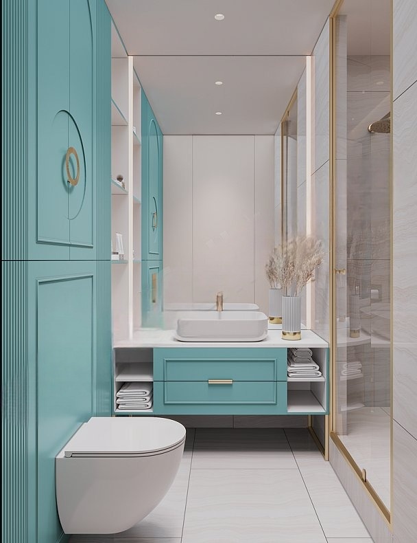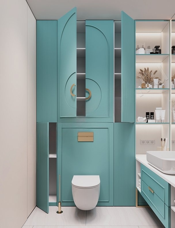 Встроенный угловой шкаф с тумбой в ванную «Модель 1218»