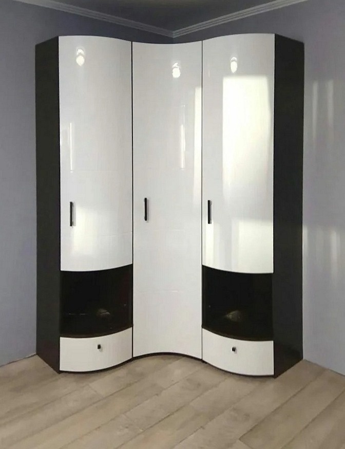 Черно-белый радиусный шкаф с глянцевым фасадом «Модель 1278»