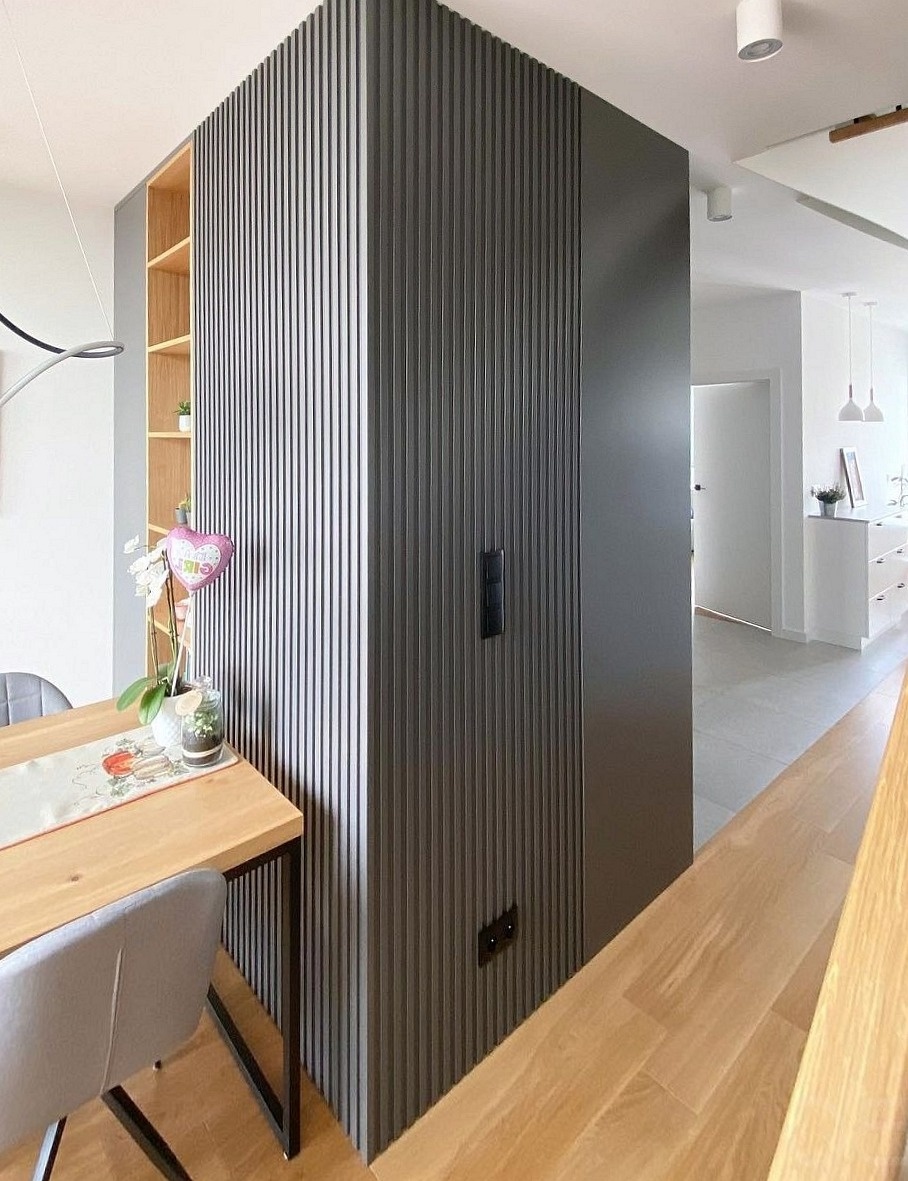 Серый шкаф с рейками в спальню «Модель 6»
