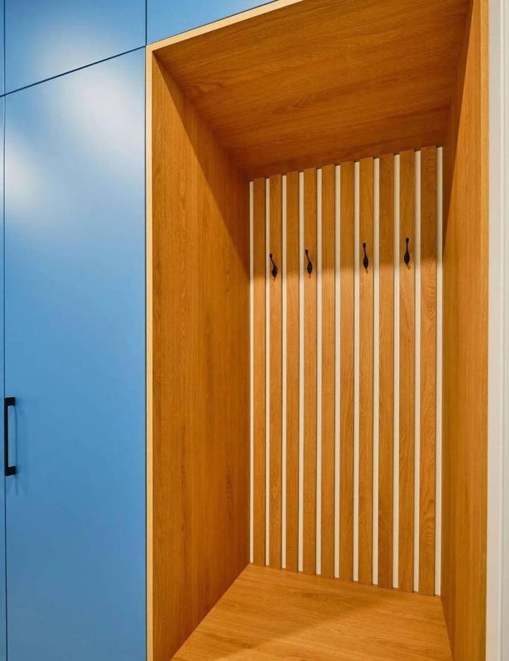 Прихожая голубого цвета с нишей и антресолью «Модель 1266»