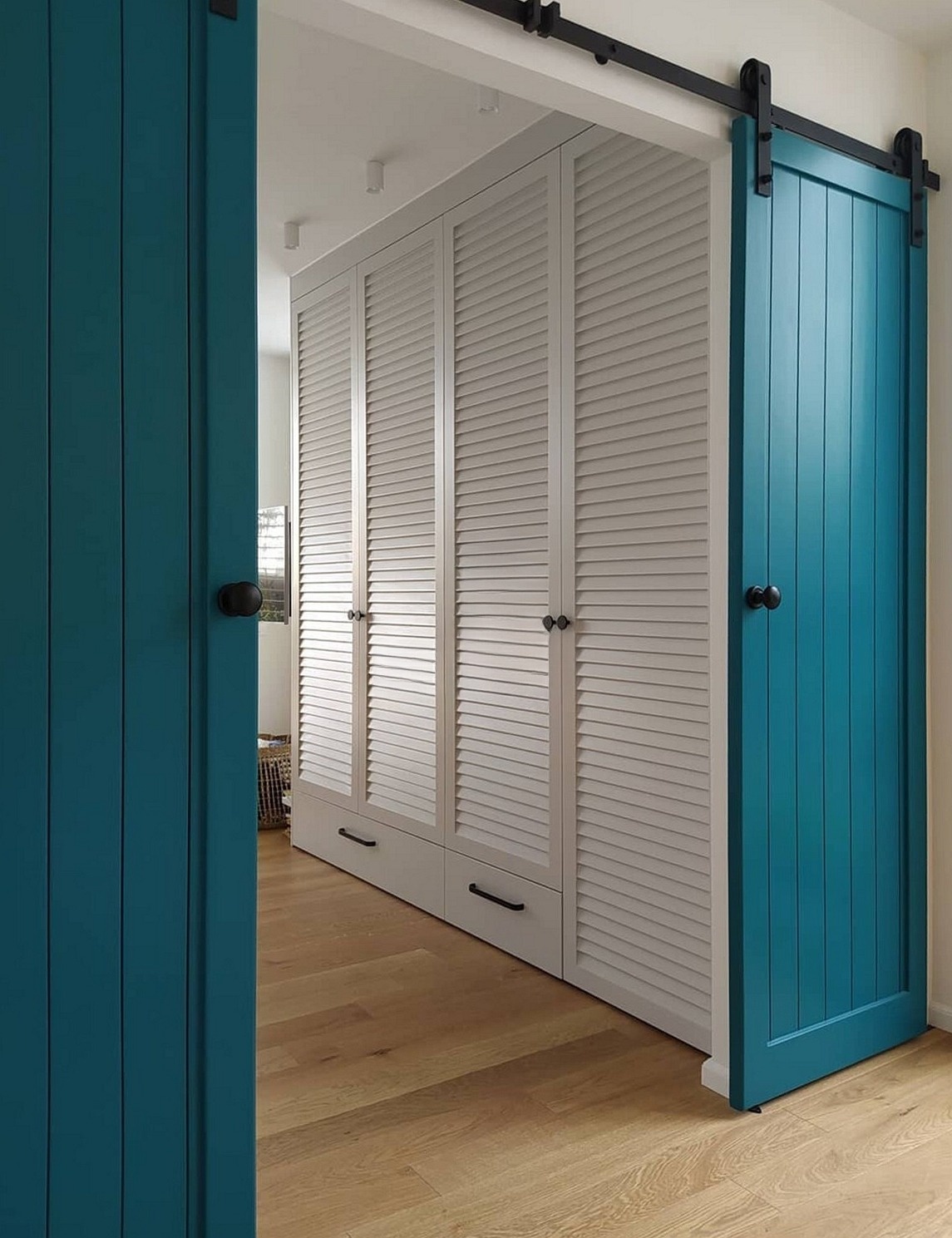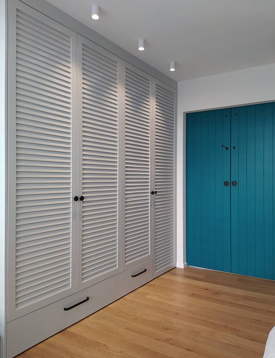 Встроенный шкаф с жалюзийными зелёными дверями «Модель 1268»