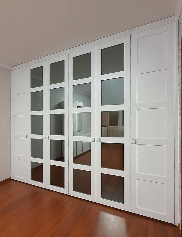 Белый шкаф с зеркальными вставками и дверями-книжка «Модель 343»